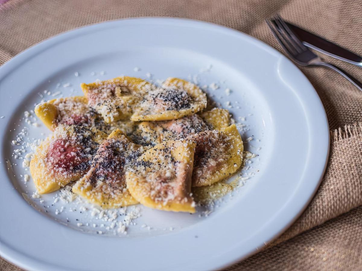 La cocina de Baita Deona te invita a disfrutar las delicias de los Dolomitas: Gnocchi de pan, Ravioles de remolacha, Sopa de cebada y polenta, Platos con caza... ¡y mucho más!