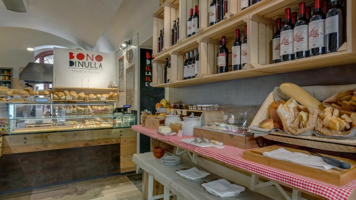 Each morning, bread is baked right before the guests' eyes and served warm, accompanied by fragrant baked goods such as the typical Tuscan schiacciata and delightful artisanal pastries. The cookies and cakes are meticulously made in the Panificio Giuntini workshop in Quarrata, one of the key contributors to the Battistero project.