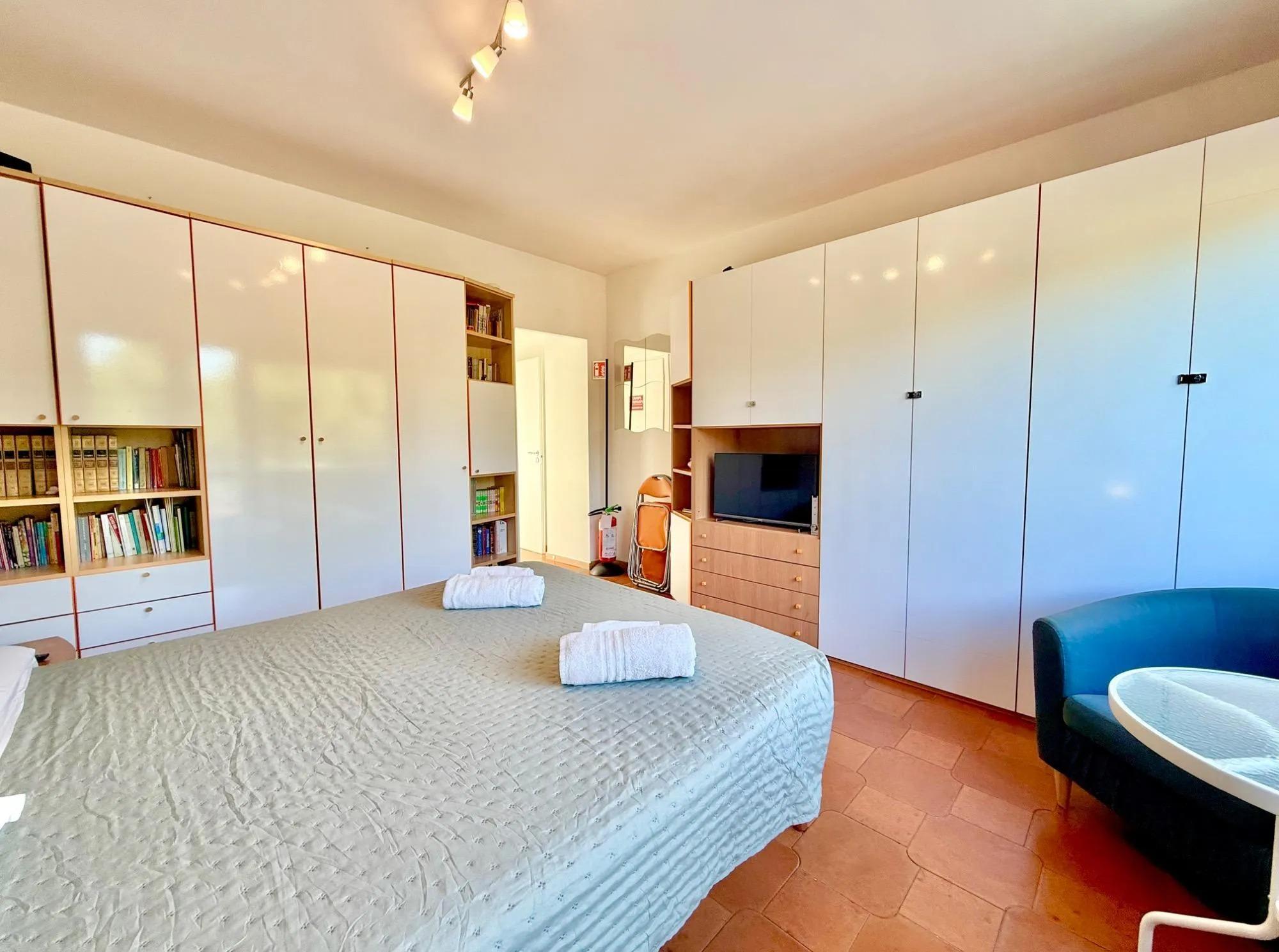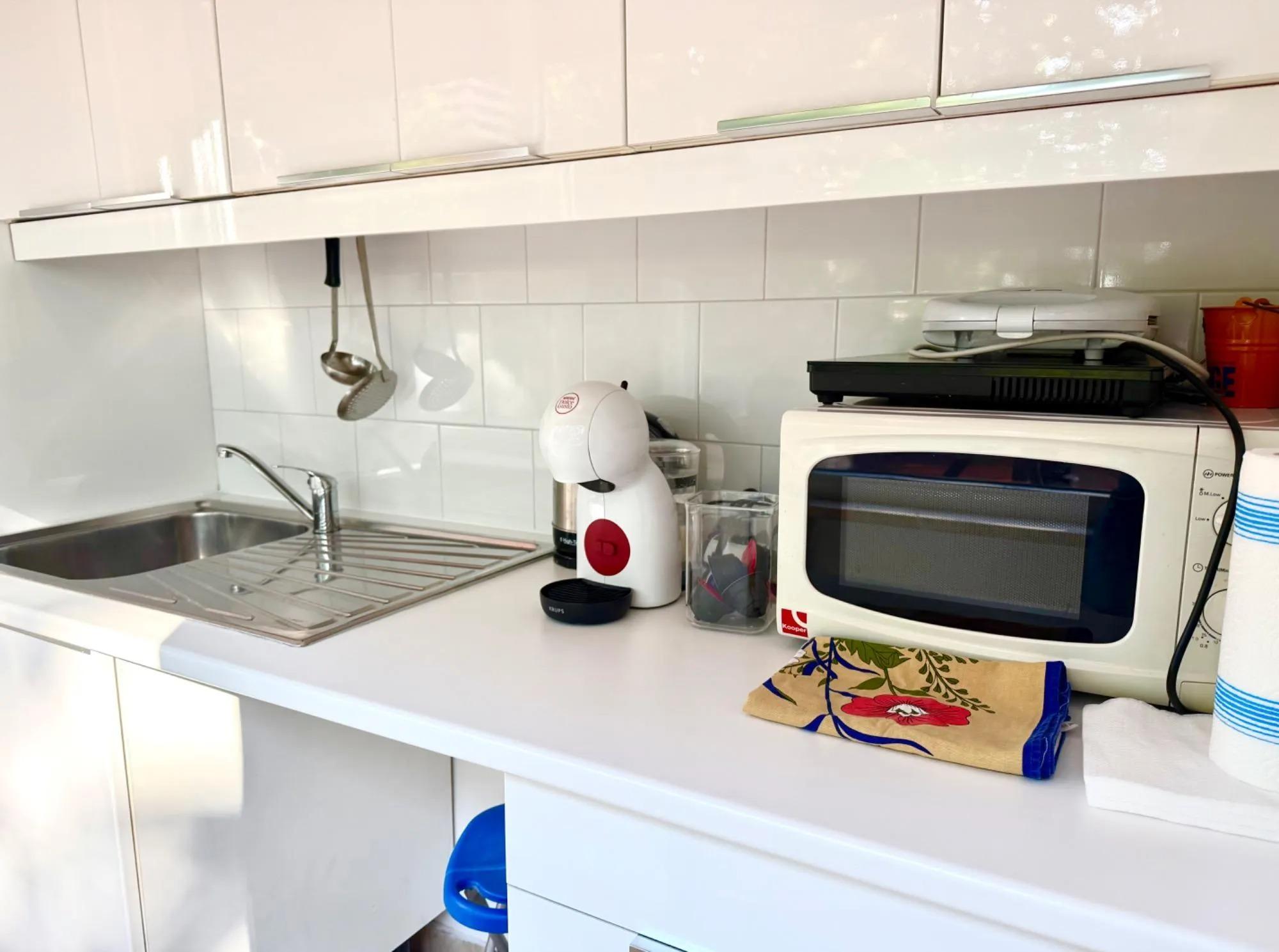 Le salon est chaleureux grâce à la lumière naturelle qui pénètre par une grande fenêtre panoramique, tandis que la présence d’un évier, d’une machine à café et d’un micro-ondes permet de gérer facilement les tâches quotidiennes. La chambre principale est conçue pour assurer calme et repos, complétée par une salle de bain moderne avec douche et accessoires essentiels. La terrasse meublée est l’atout majeur : un espace idéal pour prendre le petit déjeuner en plein air, savourer des dîners romantiques ou profiter de moments de détente en admirant les toits de la ville.