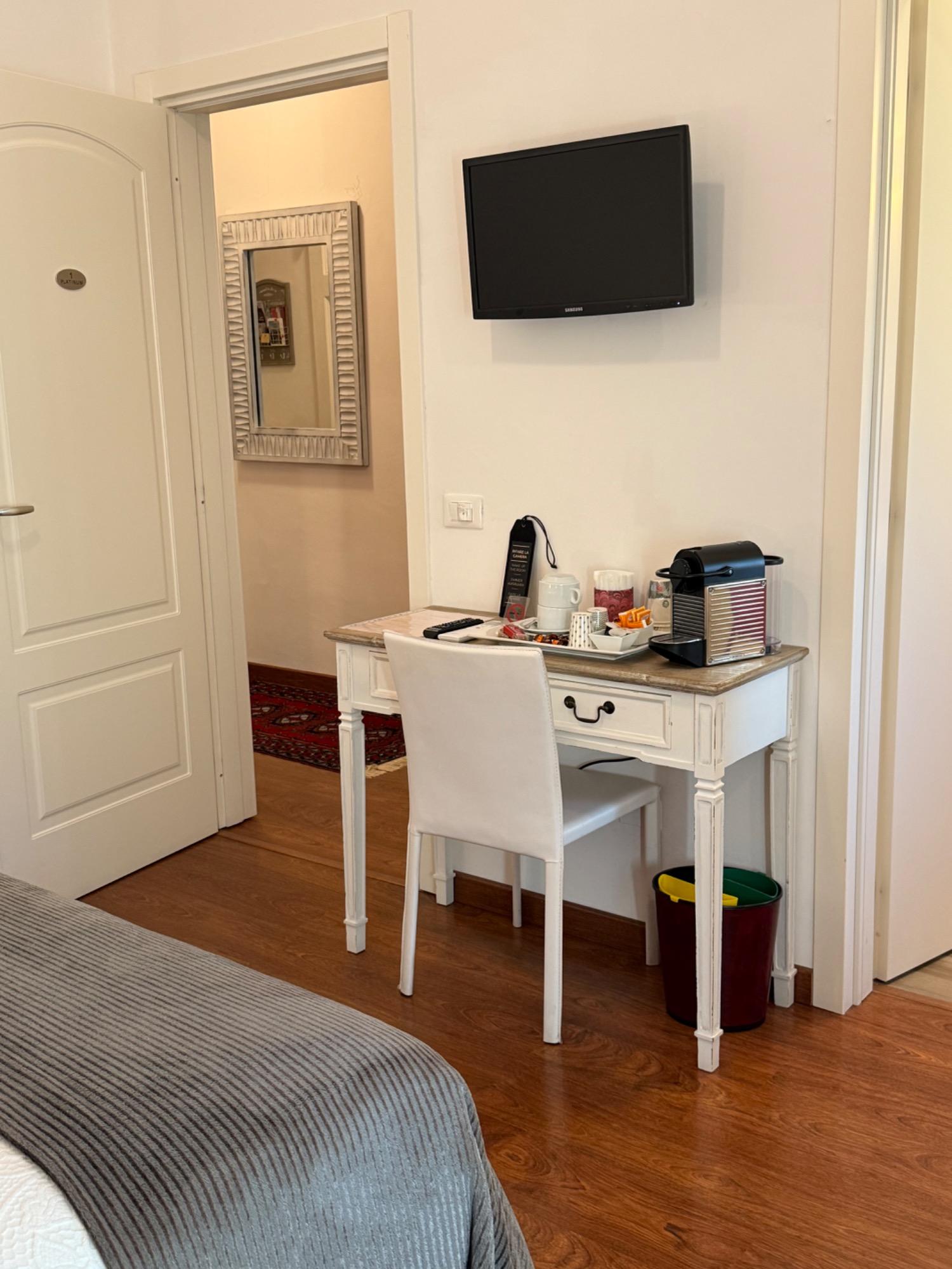Each room is equipped with a private bathroom with a comfortable shower, hairdryer, and a full set of toiletries. Additionally, they are provided with all the necessary amenities for a pleasant stay, such as Wi-Fi, air conditioning, and autonomous heating. You will also find an LCD TV, a minibar, a complimentary bottle of mineral water, soft sponge towels and bathrobes, parquet floors, a Nespresso machine with a selection of capsules, and delicious chocolates. These rooms are perfect to meet all your needs.