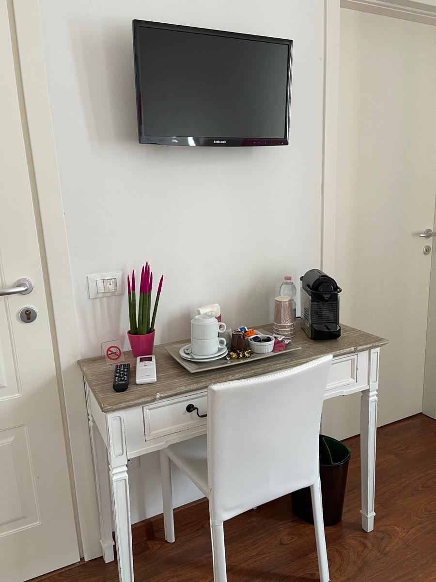 For all those who love to enjoy a great coffee, each room of our cozy B&B is equipped with a modern and award-winning Nespresso Pixie machine, complete with a selection of original capsules, delicious snacks made with biscuits, and exquisite extra dark chocolates. Additionally, we also provide tea and cappuccino capsules.