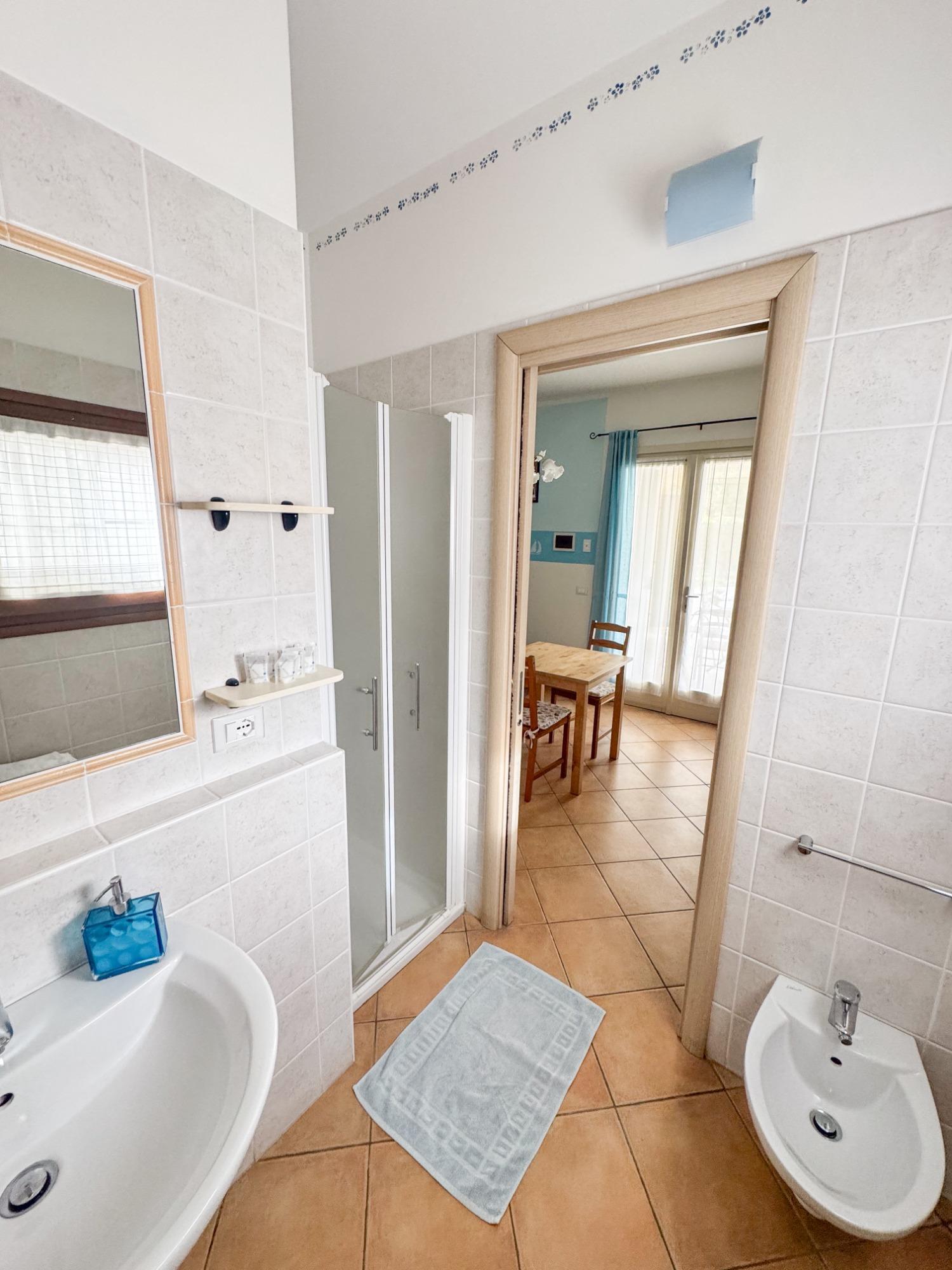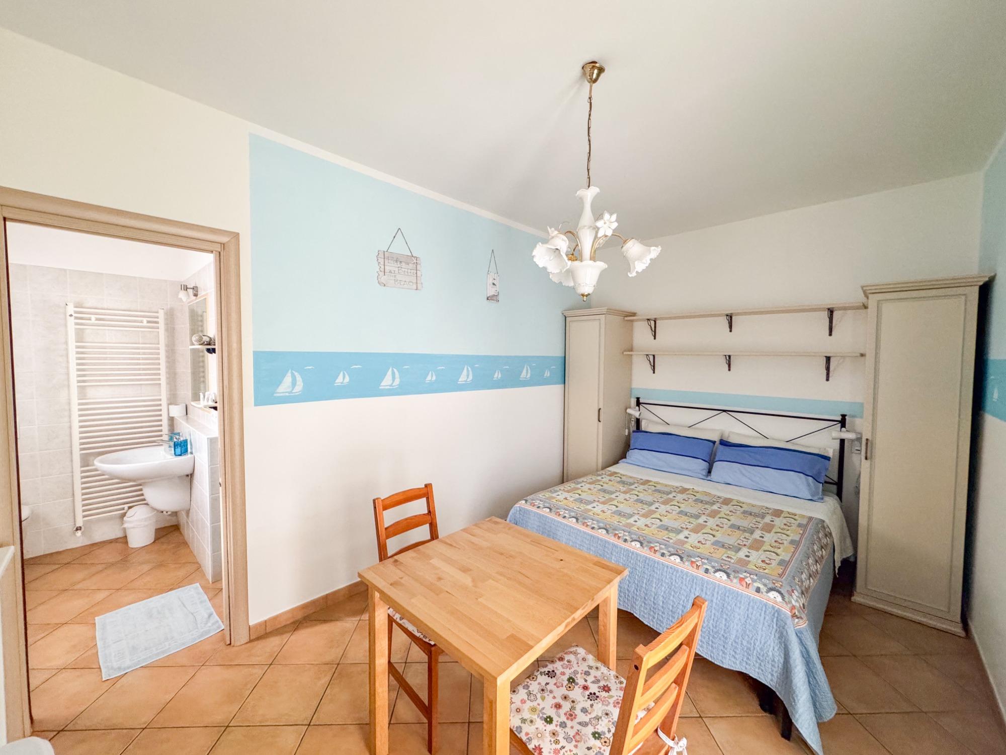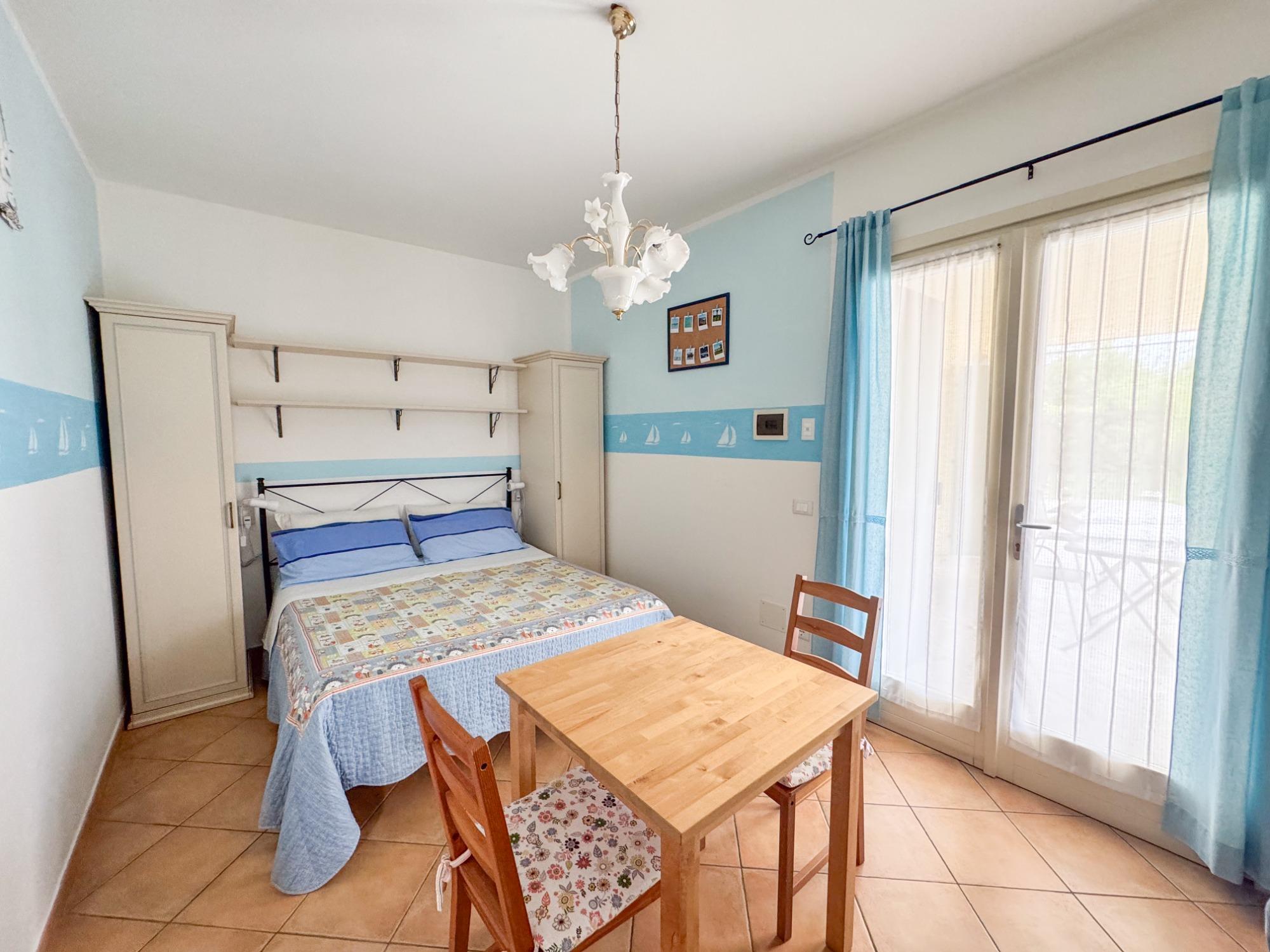 La camera si trova al piano terra con spazio esterno ed entrata indipendente. Dispone di WI-FI, aria condizionata, zanzariere, TV e un piccolo frigo. Bagno privato con doccia, letto matrimoniale e un lettino singolo. Decorata personalmente con il colore azzurro che stimola il sonno