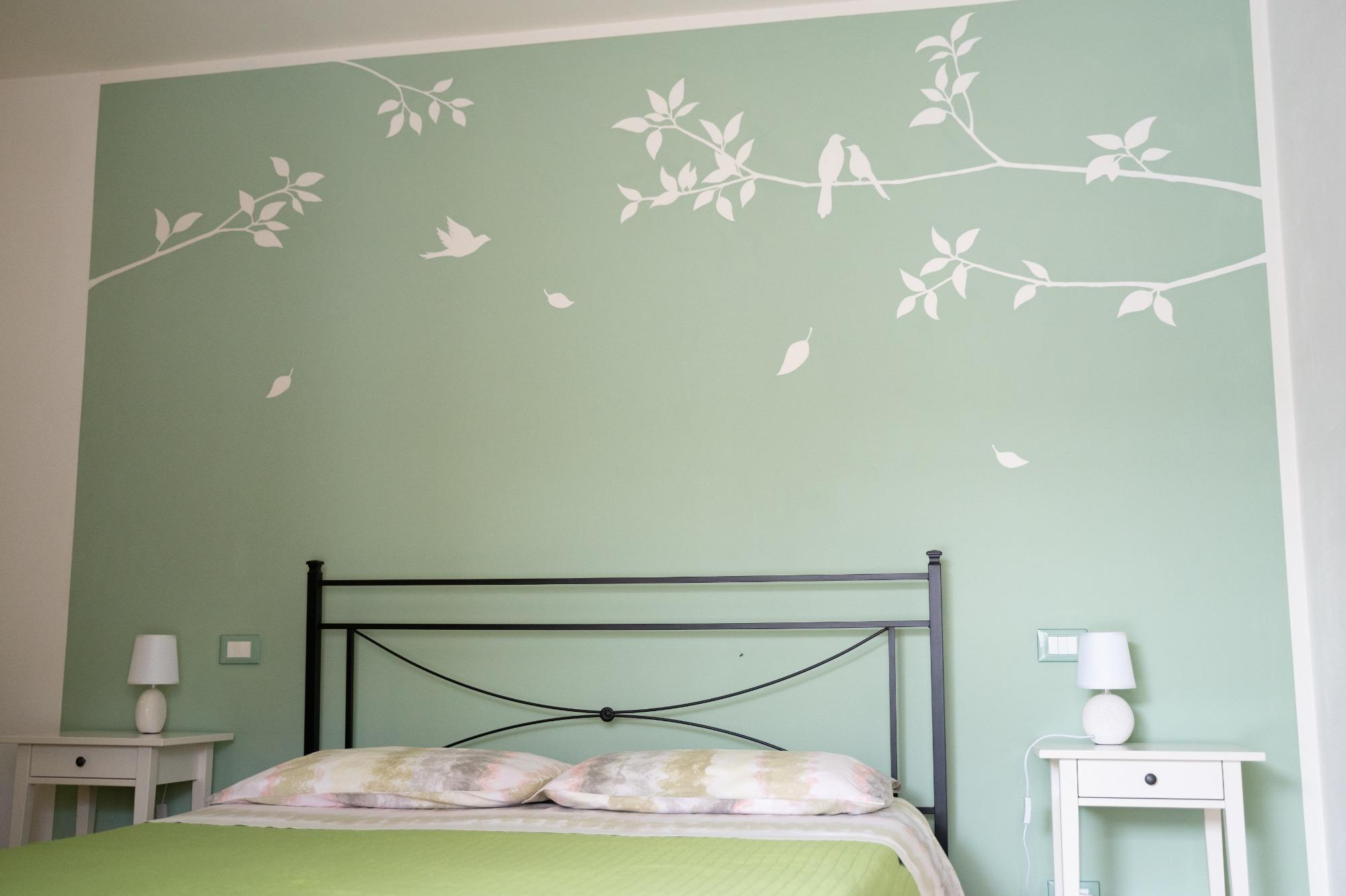 La camera è situata al piano terra con entrata indipendente e spazio esterno. Bagno con doccia e antibagno. Piccolo frigo, aria condizionata, riscaldamento, zanzariera, TV e WI-FI. Letto matrimoniale e letto singolo. Decorata personalmente con il colore verde che ha un effetto