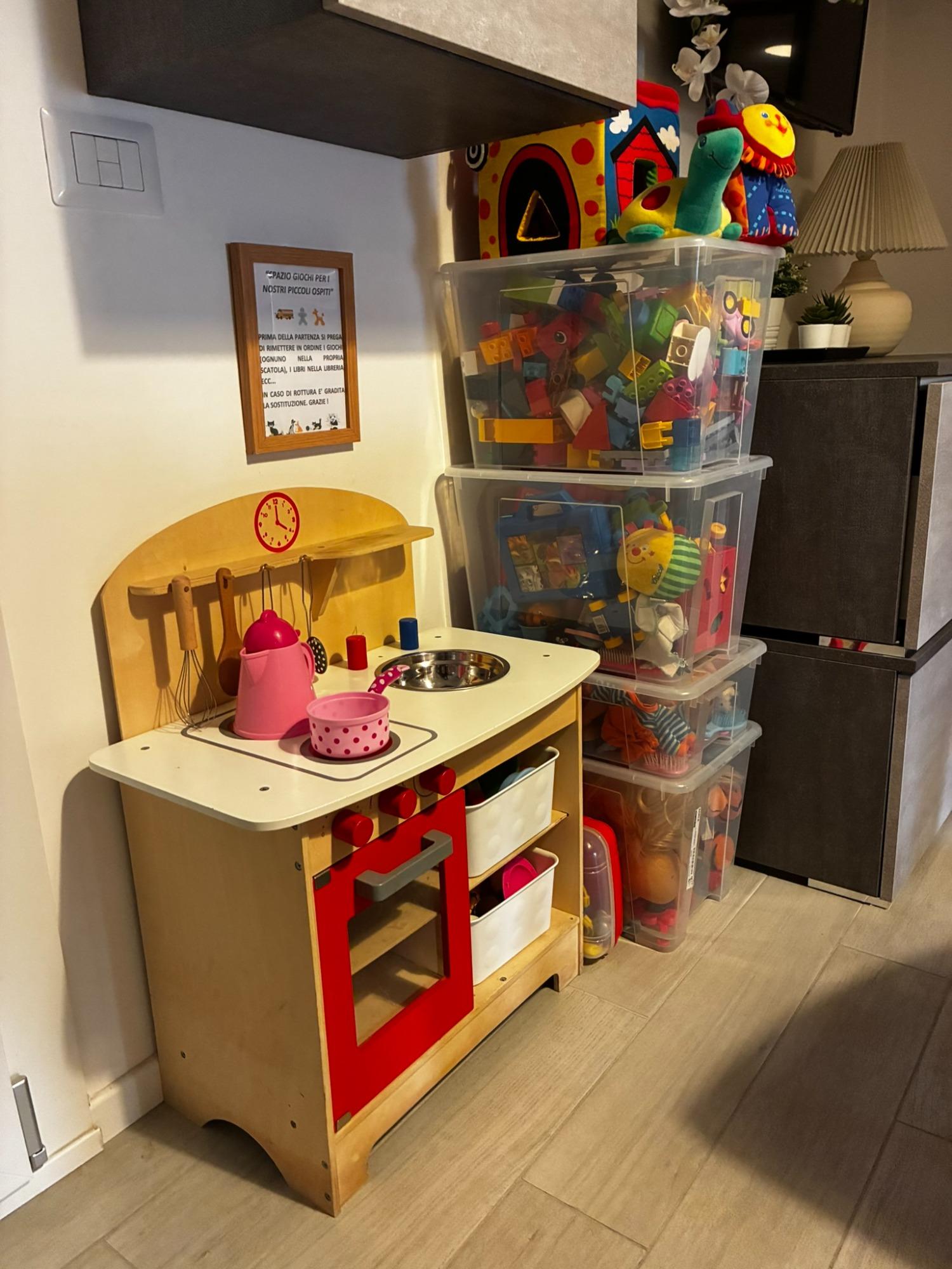 Come locazione turistica non possiamo -per legge- fornire la prima colazione o i pasti, ma troverete tutto il necessario per cucinare e preparare voi stessi la tavola, in completa autonomia e sicurezza: piatti, bicchieri, tazze, pentole, forno, microonde, bollitore, macchina per il caffè Moka, toaster, stoviglie e posate per bambini ecc. . Generi essenziali a disposizione.