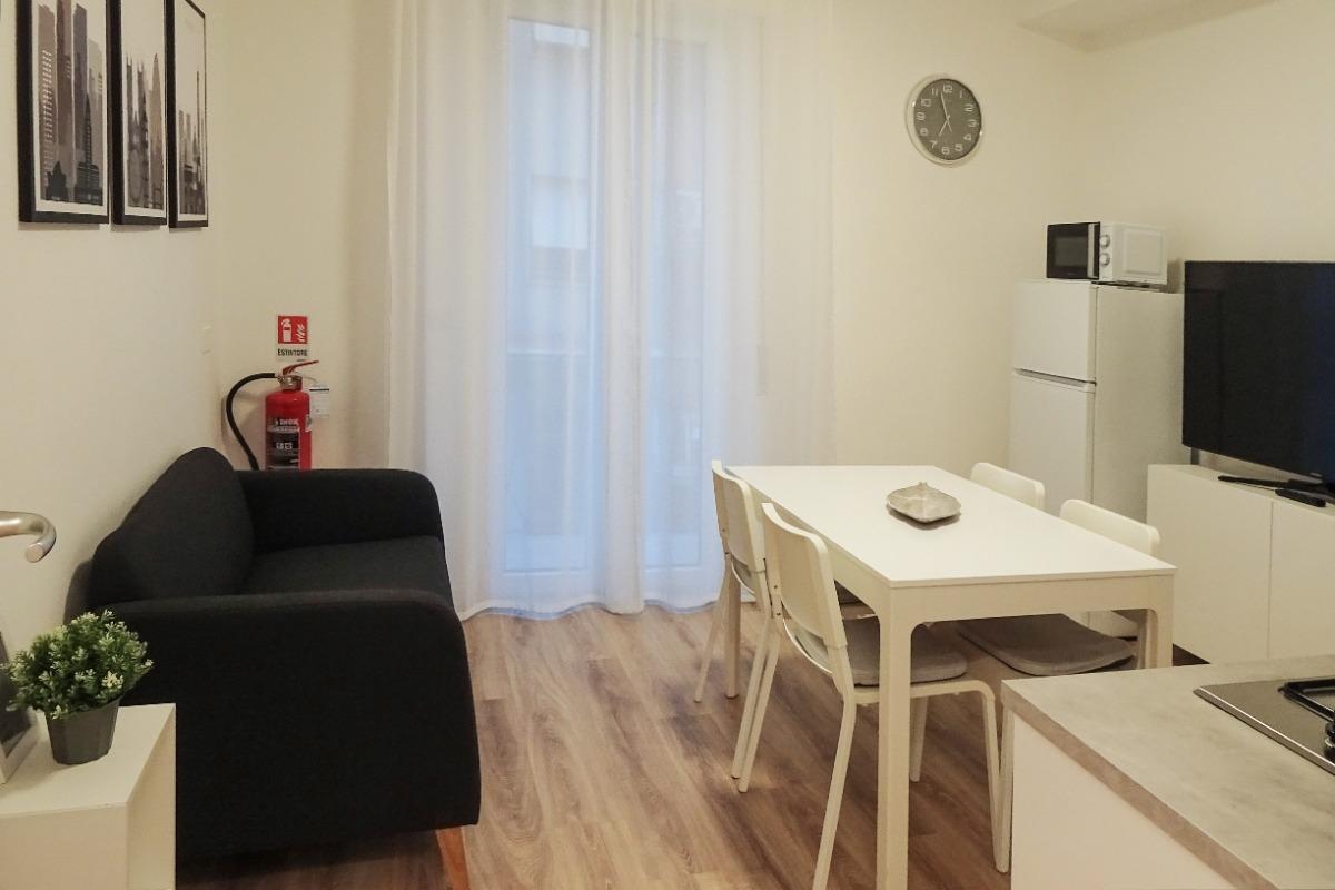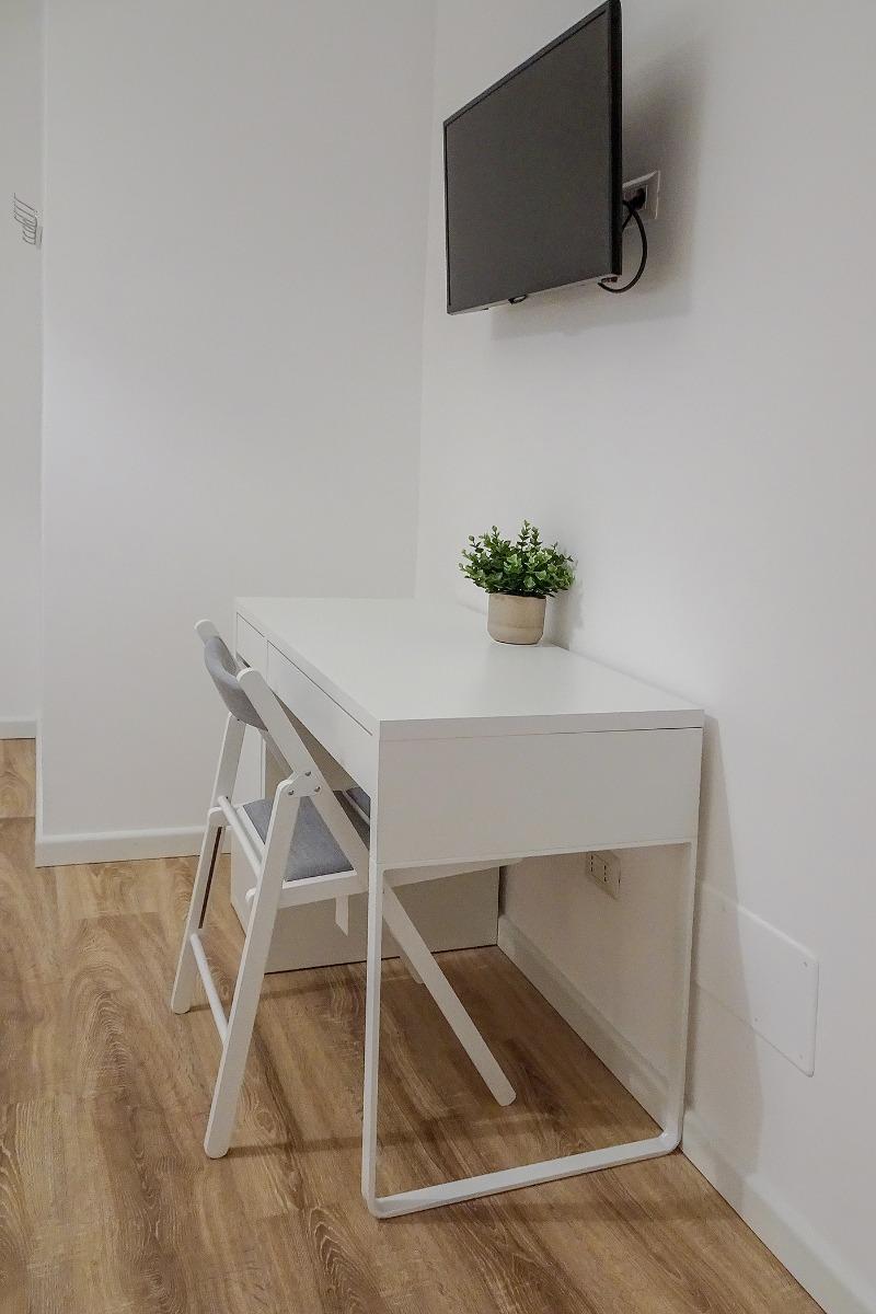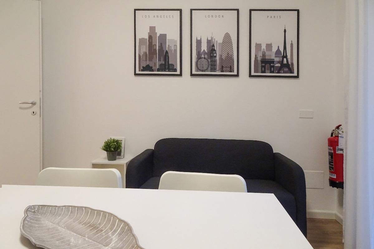 La zona de estar es ideal para relajarse, con un cómodo sofá y una mesa de comedor que puede acomodar de 4 a 6 personas. La ubicación estratégica del apartamento, a solo 1 km del centro de la ciudad y de la estación, y a 500 metros del hospital y la universidad, lo convierte en una opción excelente tanto para quienes están de vacaciones como para aquellos que visitan la ciudad por motivos laborales.