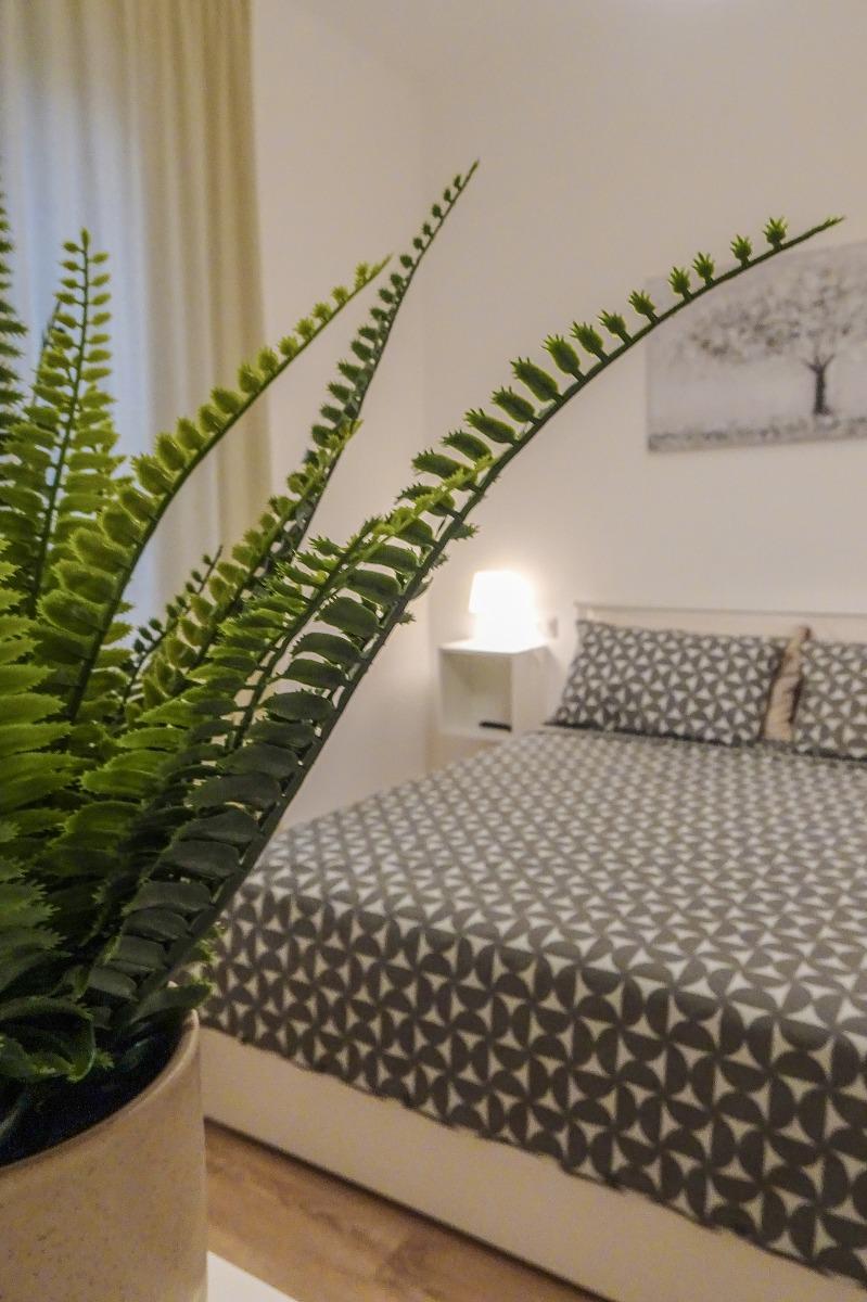 Este apartamento, recientemente renovado y de diseño moderno, brinda un ambiente acogedor y confortable, perfecto para albergar hasta 4 personas. La propiedad, situada en el primer piso de un pequeño edificio, consta de dos habitaciones dobles, un baño con ducha y una amplia sala de estar con cocina completamente equipada. Los huéspedes disponen de todas las comodidades necesarias, como lavavajillas, lavadora, horno, microondas, refrigerador, plancha y conexión a internet de fibra, además de calefacción y aire acondicionado para asegurar el máximo confort en cualquier época del año. También se puede añadir una cuna o una cama para niños menores de 12 años bajo solicitud.