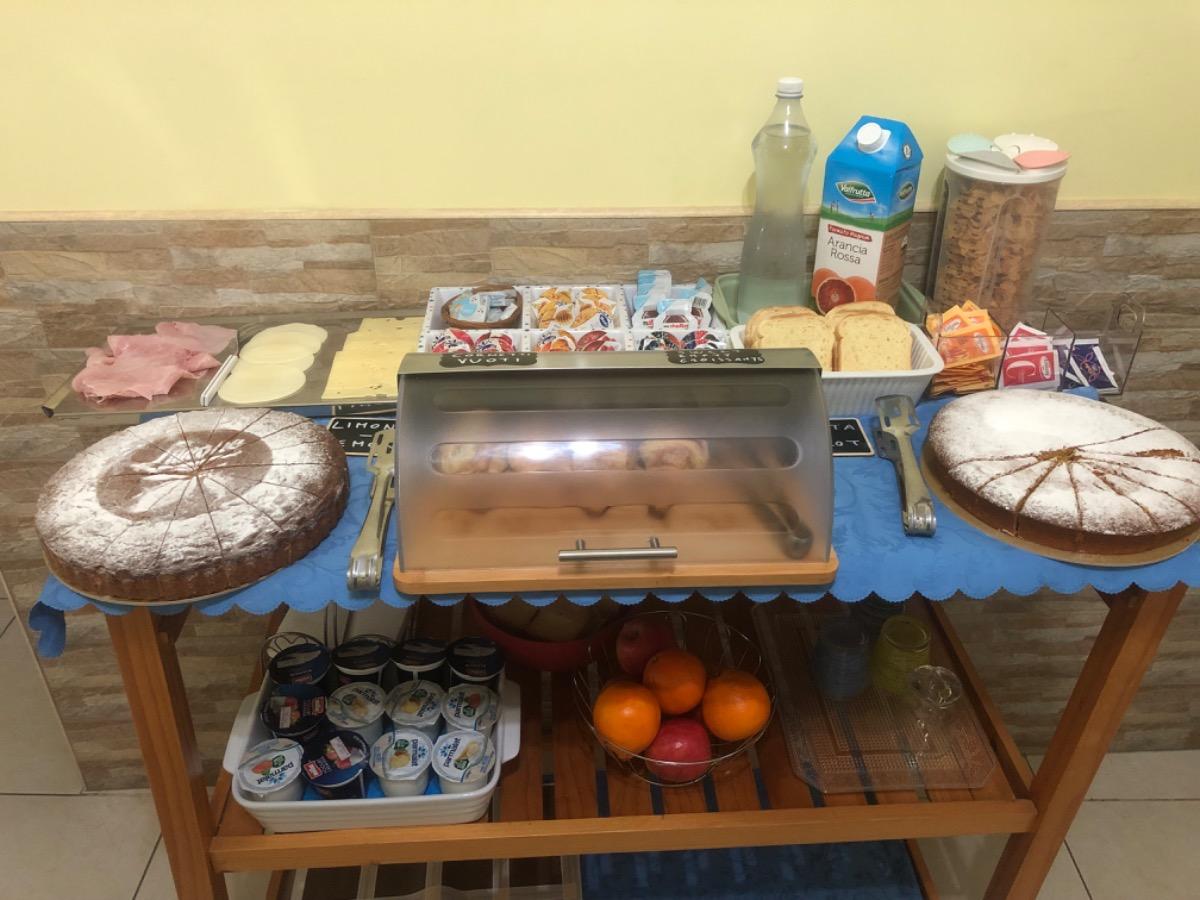 Ogni mattina potete gustare la nostra ricca colazione a buffet nel nostro soggiorno oppure fuori al terrazzino con affaccio su Corso Umberto I.