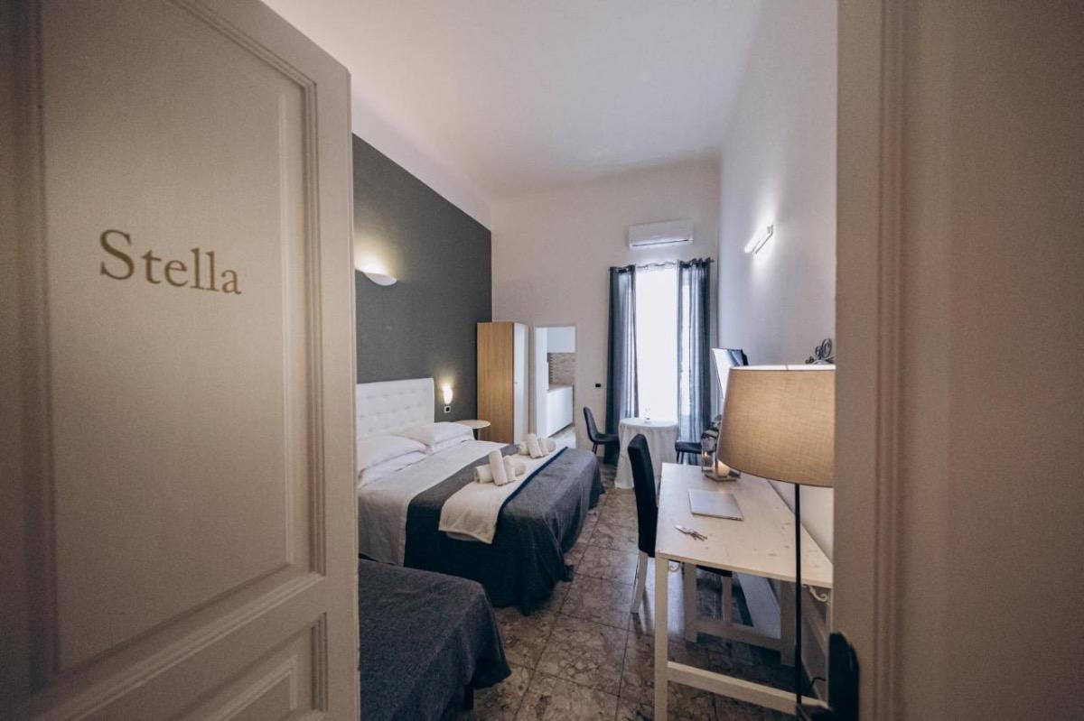 Il B&B Nonna Maria si trova nel cuore della città, a breve distanza dal Maricentro della Marina Militare Italiana e dal SVAM (SVTAM, SARAM) dell'Aeronautica Militare, dall'ospedale Ss. Annunziata, dal tribunale di Taranto e dal Palamazzola. Nonna Maria Bed and Breakfast Taranto è situato in un edificio completamente ristrutturato, con ambienti pensati per garantire soggiorni di qualità nella città di Taranto, famosa come Terra di Sparta. Nonna Maria Bed & Breakfast Taranto è senza dubbio la struttura più innovativa ed elegante del suo genere a Taranto, con camere meravigliose curate nei minimi dettagli e dotate di tutti i comfort. Ciò che ci distingue è l'attenzione per i dettagli e un tocco internazionale nell'arte dell'ospitalità. La nostra struttura ha uno stile unico che la rende "una casa lontano da casa". Nonna Maria rappresenta la perfetta combinazione tra il comfort di un albergo e l'accoglienza calorosa di una casa. Nonna Maria Bed and Breakfast Taranto offre tre camere elegantemente arredate e dotate di ogni comfort: aria condizionata, minibar, TV LCD e connessione Wi-Fi gratuita. Ogni camera dispone di un bagno con una spaziosa doccia, asciugacapelli, asciugamani e prodotti per l'igiene personale. La biancheria è stata selezionata con cura per offrire agli ospiti la piacevolezza del cotone e delle spugne di alta qualità. Tutte le camere offrono un arredamento raffinato, che unisce perfettamente funzionalità e contesto storico. Splendidi tessuti e pezzi di "design storico" conferiscono agli ambienti uno stile unico. Abbiamo chiamato le nostre camere Sole, Mare, Luna e Stella. Per le colazioni, abbiamo creato due sale accoglienti e funzionali, che possono essere utilizzate anche come zone relax per gli ospiti durante il loro soggiorno nella struttura.