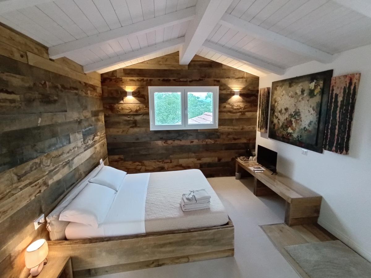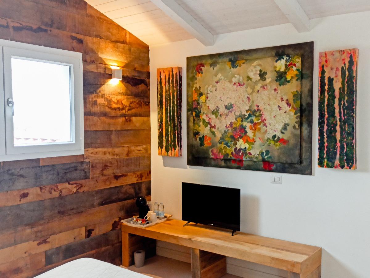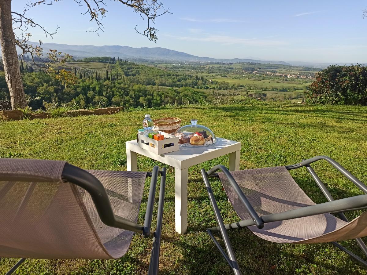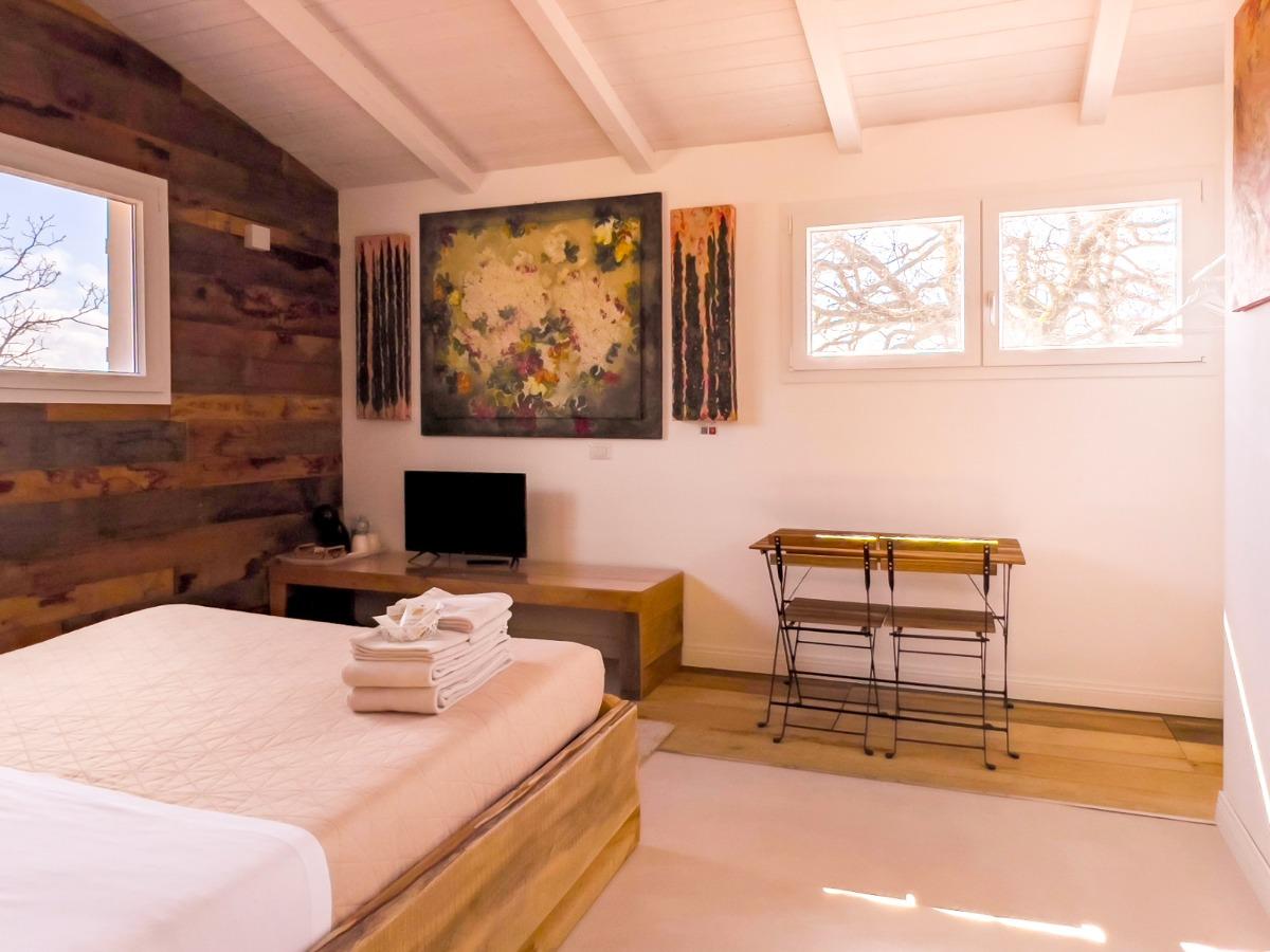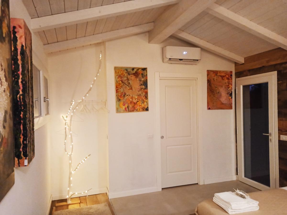 Unser Anwesen bietet ein komfortables Zimmer mit eigenem Bad in einem hübschen, neu errichteten Holzhaus, das nach den Prinzipien des ökologischen Bauens gebaut wurde. Diese gemütliche Umgebung ist im Winter warm und im Sommer kühl, dank der Verwendung hochwertiger Materialien. Es bewahrt den typischen Stil der Region mit Steinplattenverkleidungen (die dem Ort den Namen Le Lastre geben) und Steinbögen. Im Inneren haben wir edles antikes Eichenholz verwendet, um die Wände zu verschönern und Möbel, Bänke und Betten zu schaffen. Die Böden aus Harz verleihen der Umgebung einen modernen Touch. Zu den wertvollen Einrichtungsgegenständen zählen auch einige Designobjekte, darunter ein prächtiges Gemälde des Künstlers Gianlorenzo Palazzi, das vor dem Bett aufgehängt ist. Der offene Kleiderschrank ist designorientiert und das private Badezimmer ist geräumig, mit einer Duschkabine für zwei Personen und Duschköpfen ausgestattet. Die Umgebung ist hell und gut belüftet. Darüber hinaus können Sie einen herrlichen Blick auf die toskanischen Hügel und die Stadt Arezzo direkt vom Garten aus genießen. Wir bieten einen bequemen kostenlosen Parkplatz und die Möglichkeit zum Self-Check-in. Während des Sommers wird das Frühstück, je nach Wetterlage, gegen Aufpreis im Garten serviert.