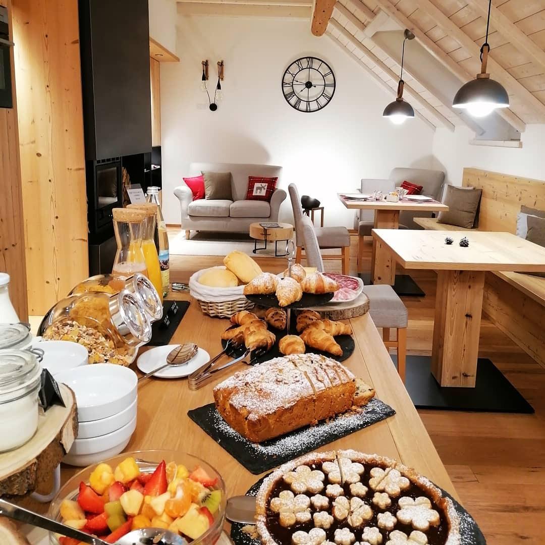 Every morning, in our cozy breakfast room, you will find a rich buffet that will conquer you. You can taste homemade cakes and sweets, delicious homemade jams, cold cuts, natural yogurt, butter and cheese from the renowned Val Serina brand, fresh bread, croissants, and cereals. And if you are fruit lovers, you can delight your palate with a fresh fruit salad and tasty fruit juices.