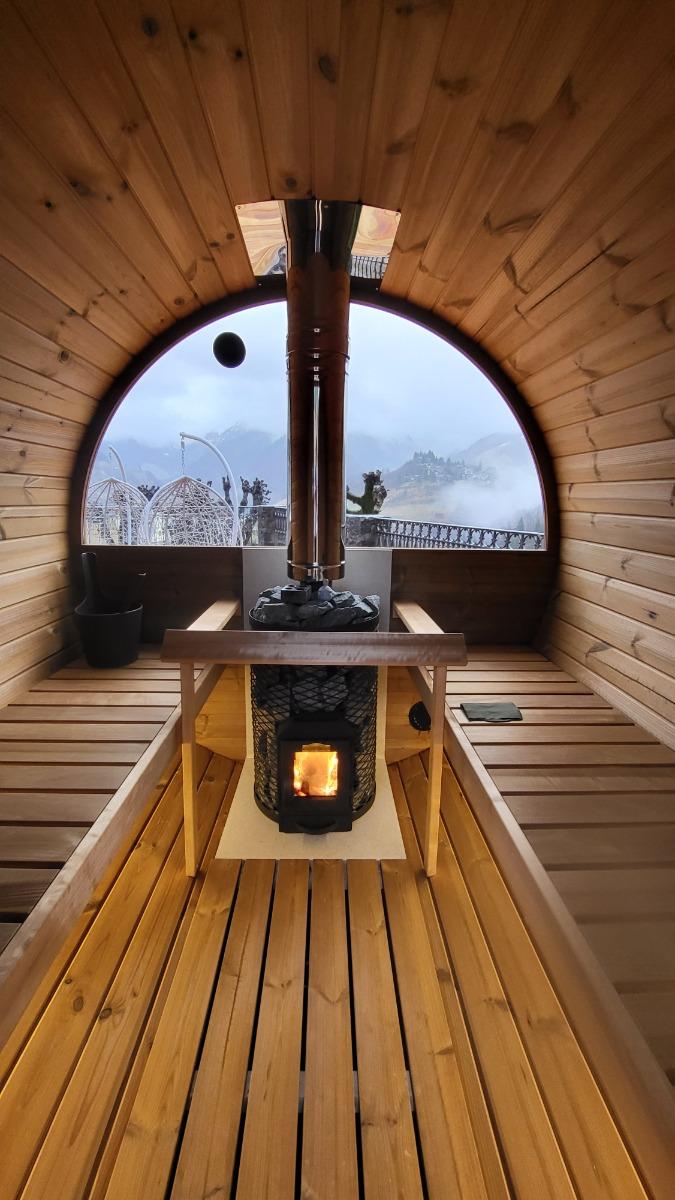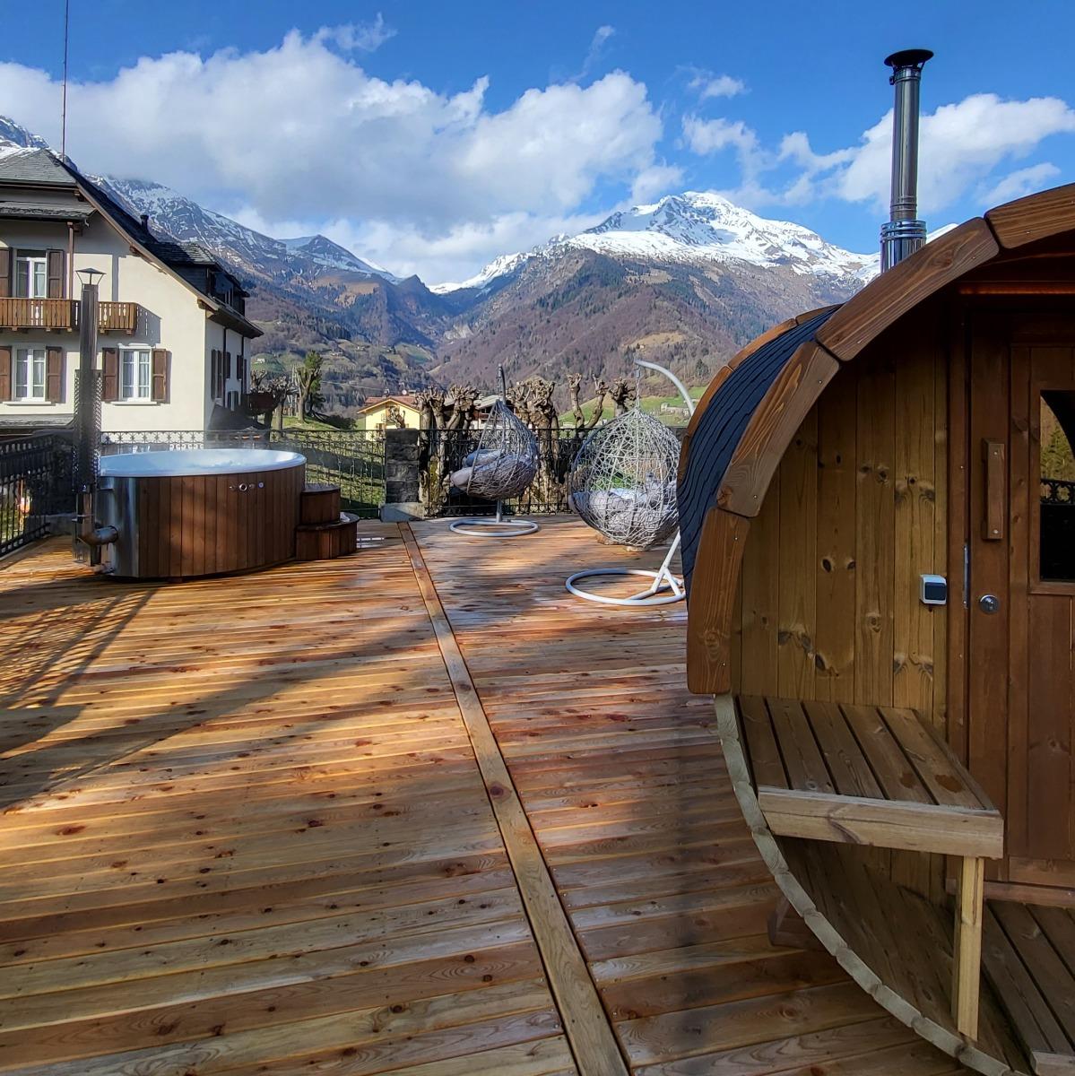 Starting from January 2024, there will also be a small outdoor wellness center available, with a panoramic barrel sauna and a hot tub.