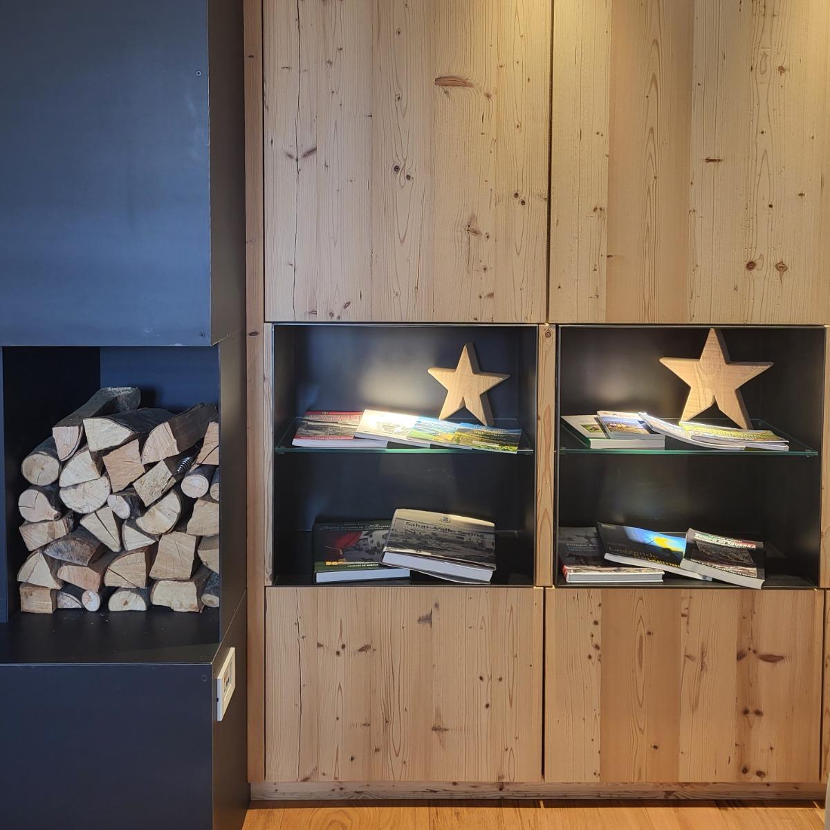 The breakfast room is large and cozy, with a relaxation area equipped with a sofa and fireplace, and a charming panoramic corner where you can enjoy a healthy breakfast while admiring the mountains.