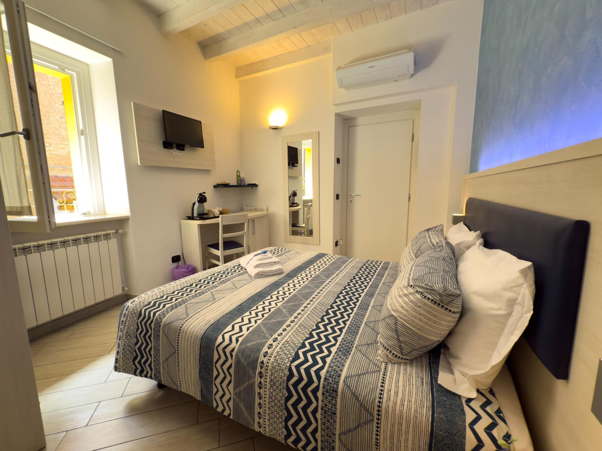 We offer cozy and comfortable rooms, completely renovated and recently furnished, in an informal and independent environment with a separate entrance inside a courtyard. Each bed is equipped with fireproof memory foam mattresses and pillows. Each room has a private bathroom with a shower, directly connected to the bedroom. The bathrooms are equipped with towel sets and hairdryers. The rooms have individual heating, a 24" LCD wall-mounted TV, ADSL wireless connection, a safe, and a small refrigerator. They are also provided with bath foam and shampoo. The structure and rooms are soundproofed and the absence of traffic noise guarantees a peaceful and rejuvenating sleep.