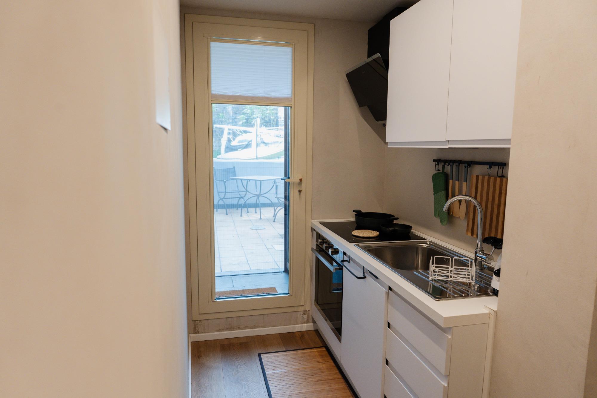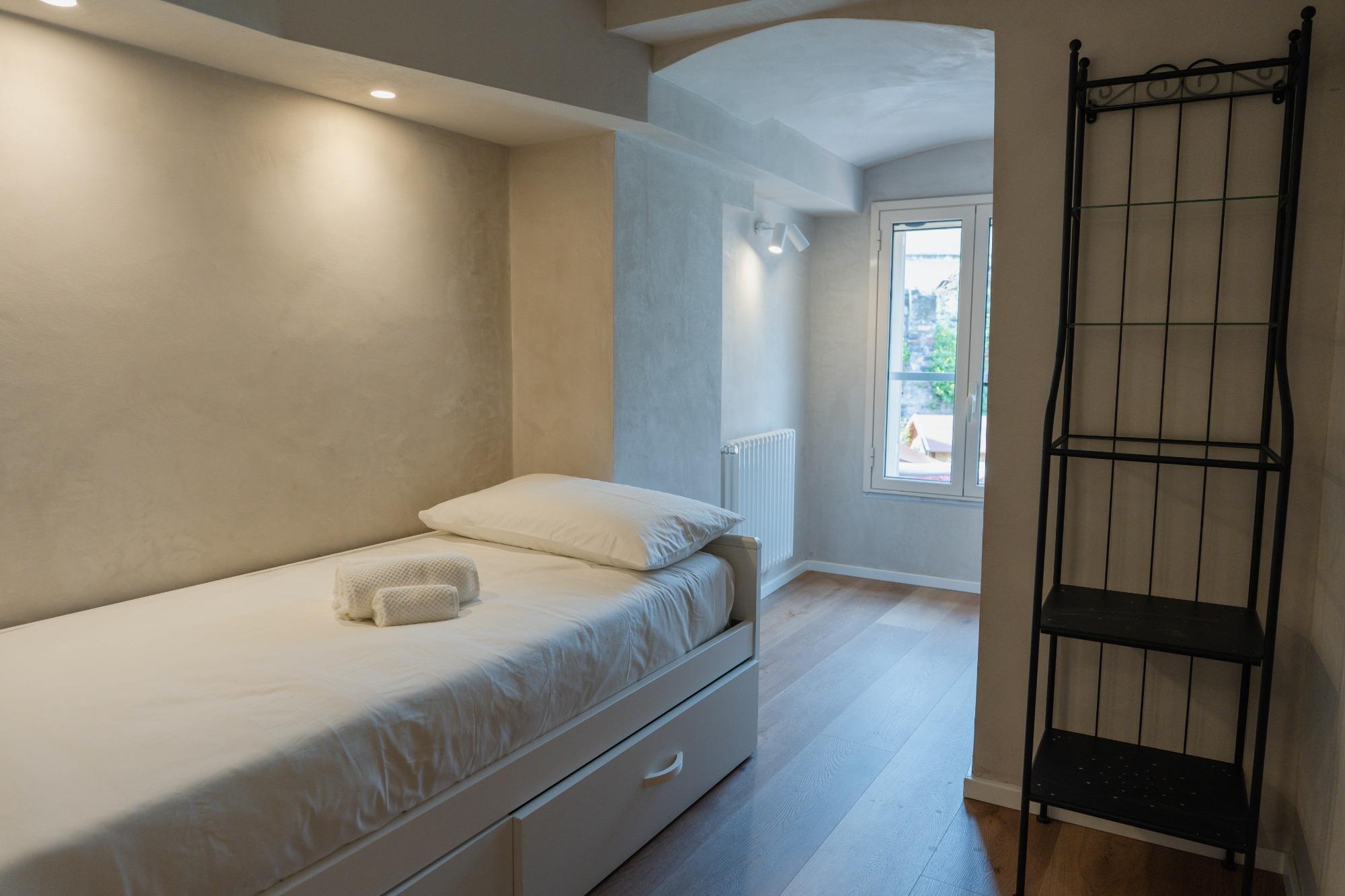 L’ingresso indipendente conduce in un soggiorno ampio e luminoso, dove un comodo divano e un letto matrimoniale a scomparsa creano un’atmosfera accogliente e funzionale. La cucina moderna è completamente attrezzata, mentre il bagno principale, con doccia, è situato al piano terra. Una scala interna conduce al soppalco finestrato, che ospita una cameretta con letto singolo e secondo bagno, rendendo l’alloggio adatto a coppie, famiglie con un bambino o a piccoli gruppi. Su richiesta sono disponibili culla e seggiolone.