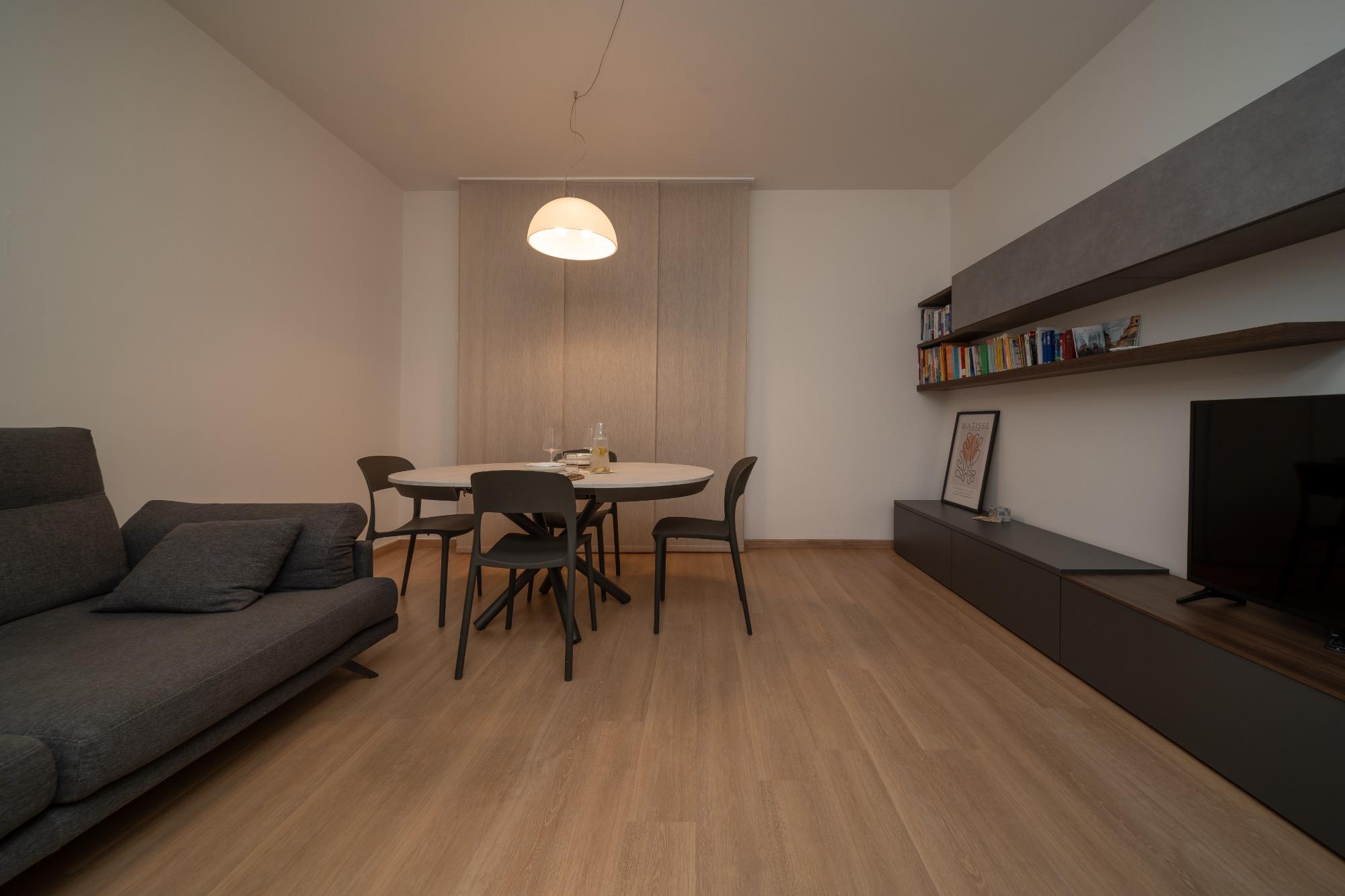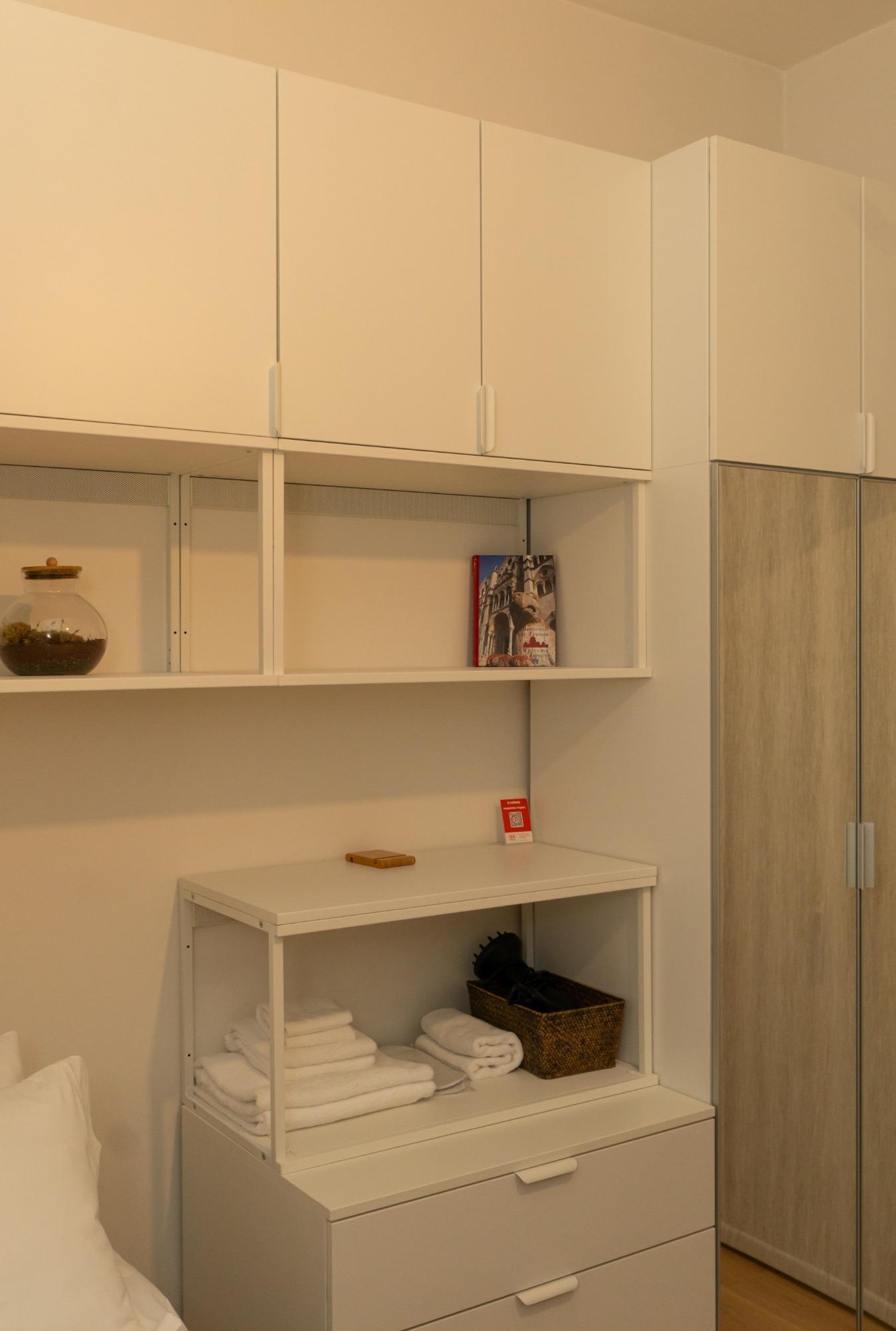 La stanza dispone di un letto singolo con biancheria inclusa, scrivania con poltroncina e computer in modalità ospite, ampio guardaroba e cassettiera. Per gli amanti del benessere sono disponibili un materassino e attrezzi per yoga o pilates. La cucina è attrezzata con tutti gli elettrodomestici, mentre il soggiorno offre un comodo divano, Smart TV e un tavolo da pranzo allungabile. Il bagno moderno include una doccia comoda, sanitari sospesi e spazio per riporre i propri oggetti.