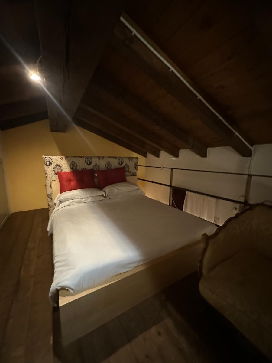 El Loft Bohémien es un apartamento elegante que destaca por su atmósfera bohemia, realzada por un techo abuhardillado con vigas a la vista que alcanza una altura de 6 metros, creando un ambiente único y cautivador. La distribución del espacio incluye una entrada, una luminosa sala de estar con sofá y una cocina completamente equipada, un baño moderno y un altillo con una cómoda cama doble. Las grandes ventanas que dan a un tranquilo patio interior garantizan paz y privacidad, haciéndolo ideal para 2, 3 o 4 huéspedes, ya sea familias o grupos de amigos. Es importante señalar que, debido a la presencia del altillo, el apartamento no es adecuado para niños menores de 12 años.