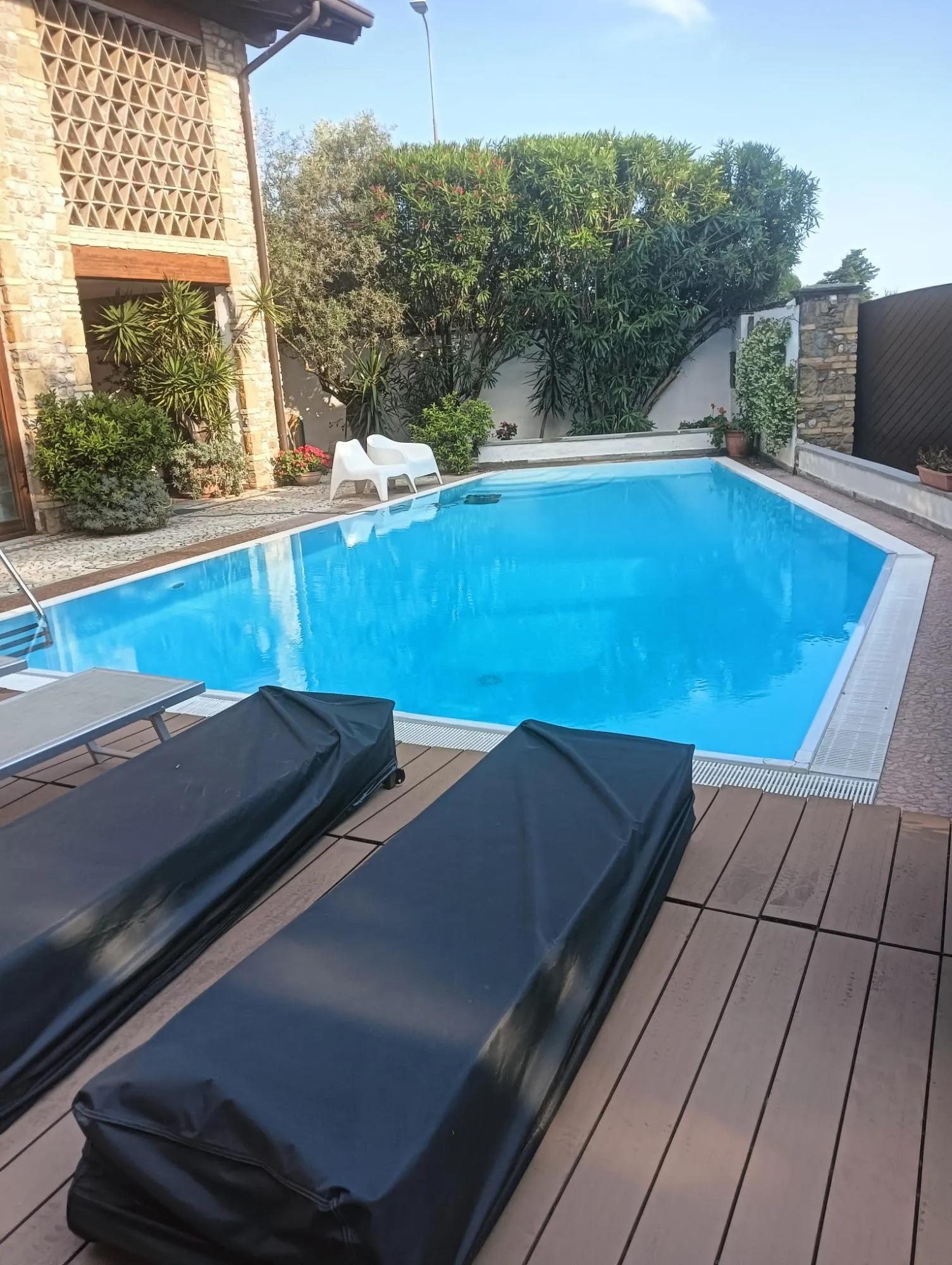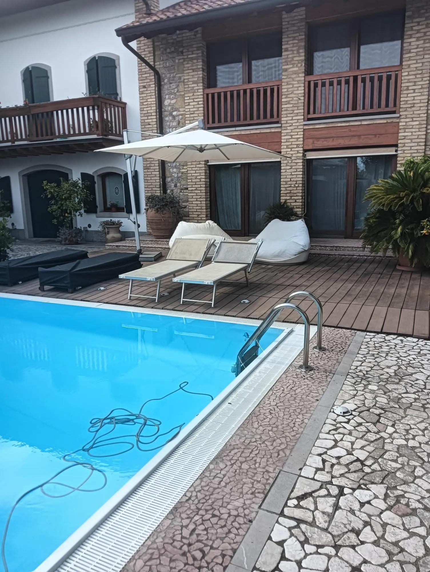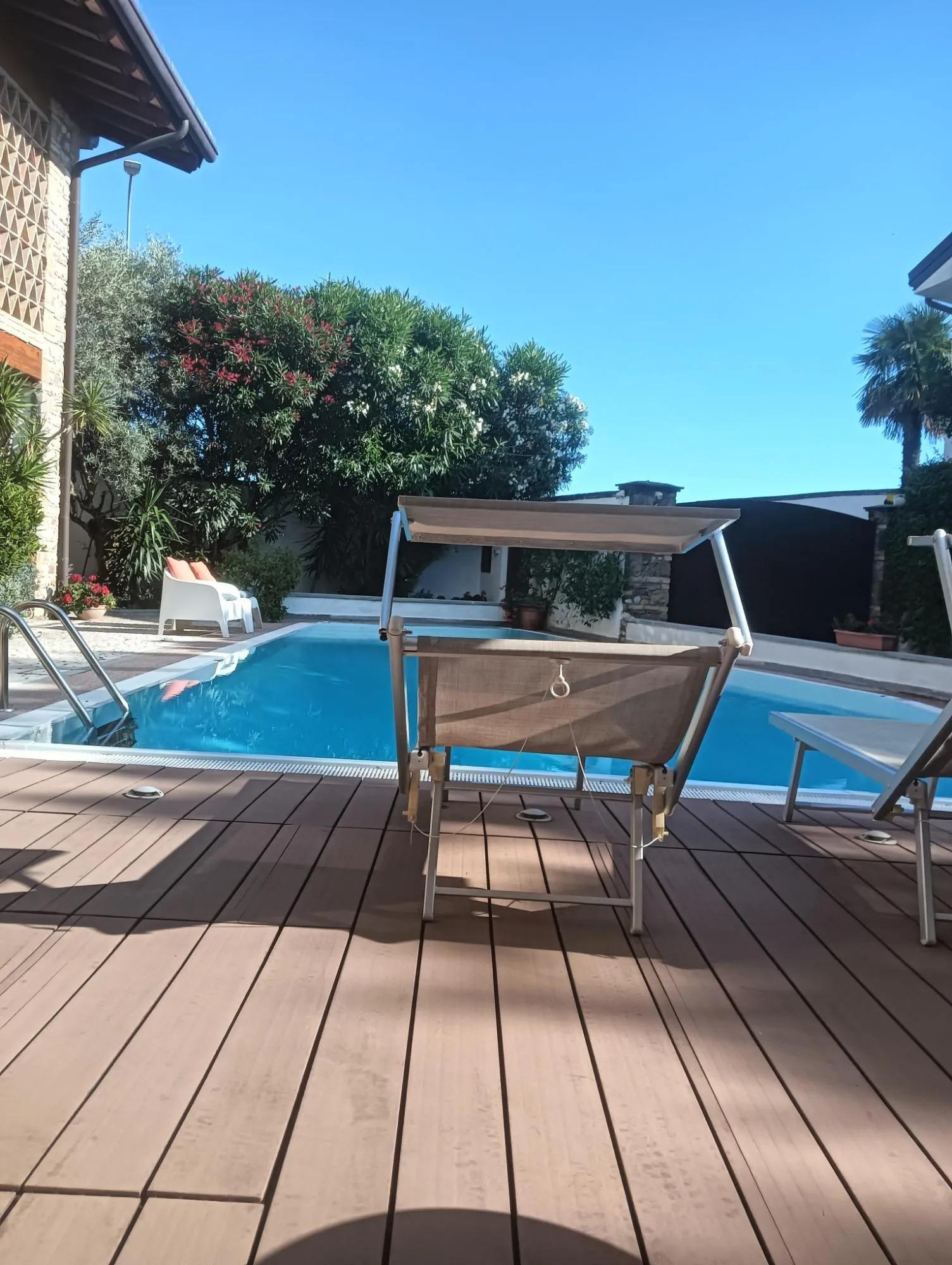 El cuidado jardín que rodea la villa alberga una hermosa piscina de temporada, de 12 metros de largo y hasta 2,25 metros de profundidad, perfecta para refrescarse en los días más calurosos. Los huéspedes disponen de tumbonas, sofás, sombrillas y sillones, con amplias zonas de sombra y aromas mediterráneos que evocan paisajes del sur. Desde mayo, el agua de la piscina alcanza temperaturas agradables.