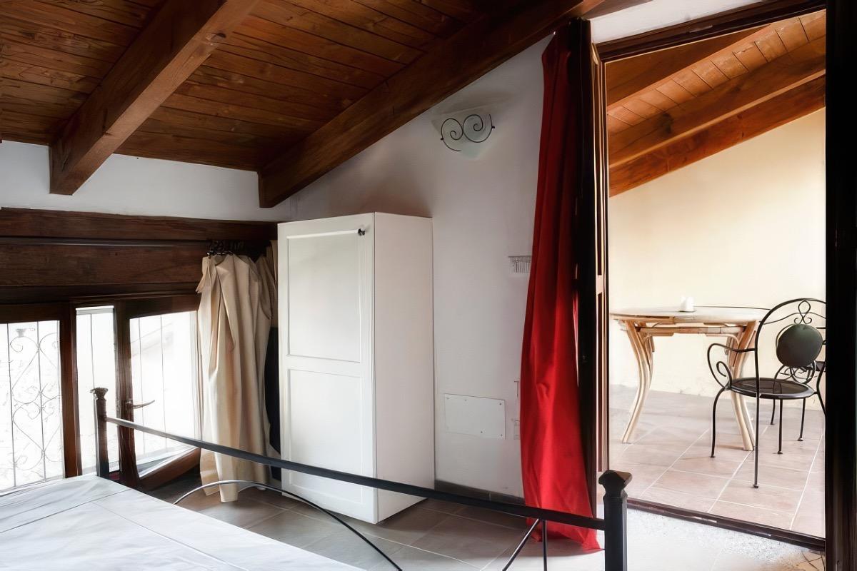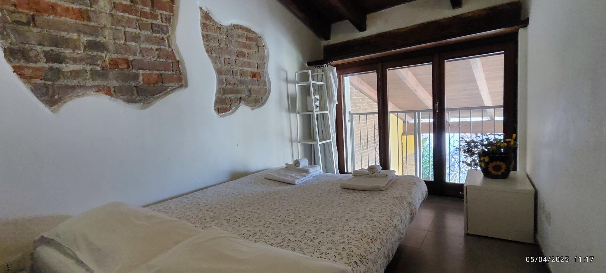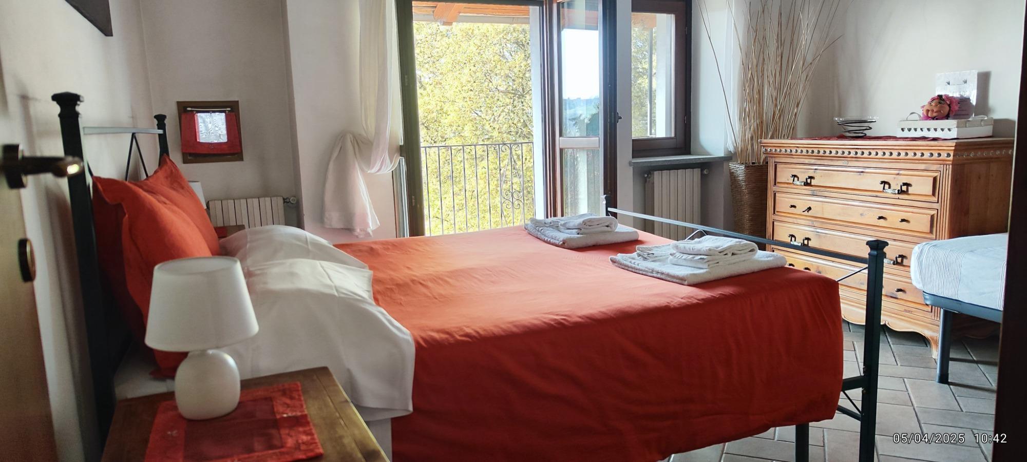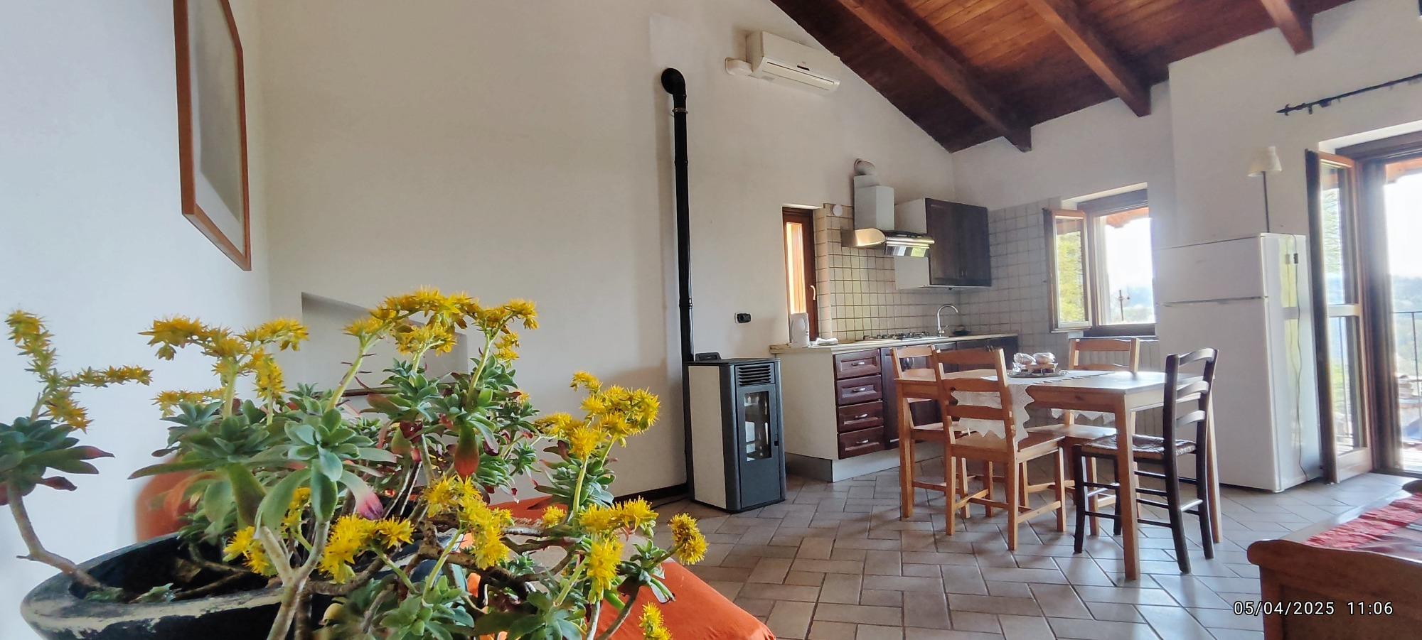 L'alloggio mansardato con alti soffitti in legno è dotato di lungo bolcone con splendida vista sulle nostre colline. Composto da camera letto matrimoniale, ampio soggiorno con cucina accessoriata e divano letto 2 posti, ampio bagno con doccia. L'alloggio è dotato di televisore con antenna satellitare, su richiesta decoder o lettore dvd. Gli arredamenti sono di pregio, le finestre dotate di zanzariere. Un vassoio in appartamento con il necessario per prepararsi la colazione