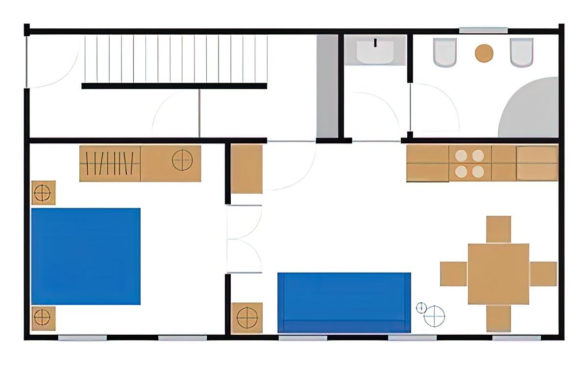 Apartamento en primera planta de 60 metros cuadrados que consta de dormitorio, sala de estar / cocina , baño privado. El precio incluye los servicios (agua, electricidad, gas), el suministro de ropa de cama y 2 toallas por persona, tasa de estancia y limpieza final.