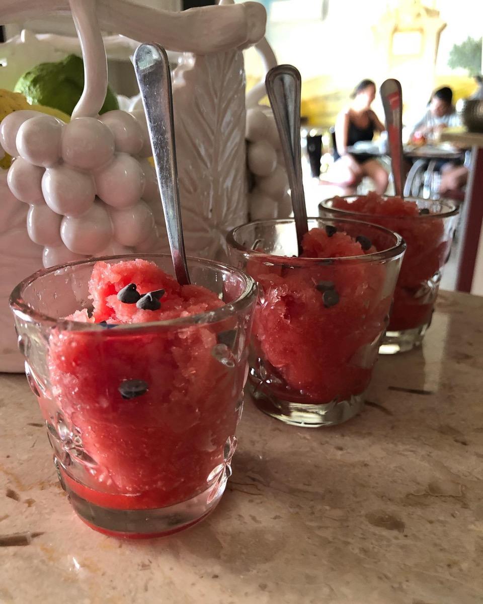 A typical Mediterranean breakfast with fresh croissants served hot, "con lu tuppo" brioches served with fresh lemon granita, artisanal jams, homemade pies and sweets, Valle del Belice DOP ricotta cheese and savory options.
