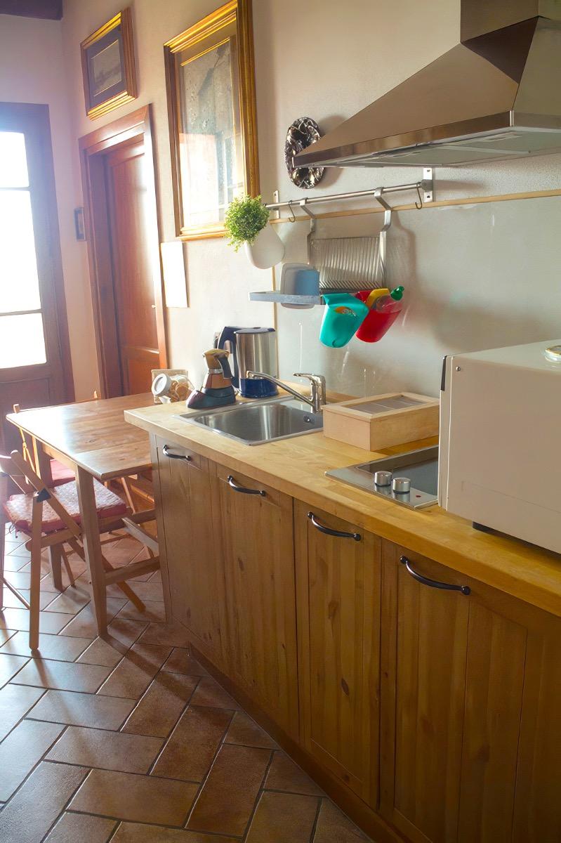 Le camere attuali sono molto confortevoli, semplici e spaziose, garantendo un ambiente tranquillo e perfetto per il riposo. Sono disponibili tre tipologie di camera: due matrimoniali e una con due letti singoli. Ogni camera dispone di un bagno privato, ricreando così l'intimità che si trova nelle nostre case. Due delle camere condividono una piccola area cucina, dove viene preparata la colazione durante l'inverno. Inoltre, per chi lo desidera, è possibile cucinare un pasto caldo, gustare una tisana serale o prendere il primo caffè del mattino. Le tre camere si affacciano su uno spazio comune, dove è possibile fare colazione e condividere piacevoli momenti con gli altri ospiti, se lo si desidera.