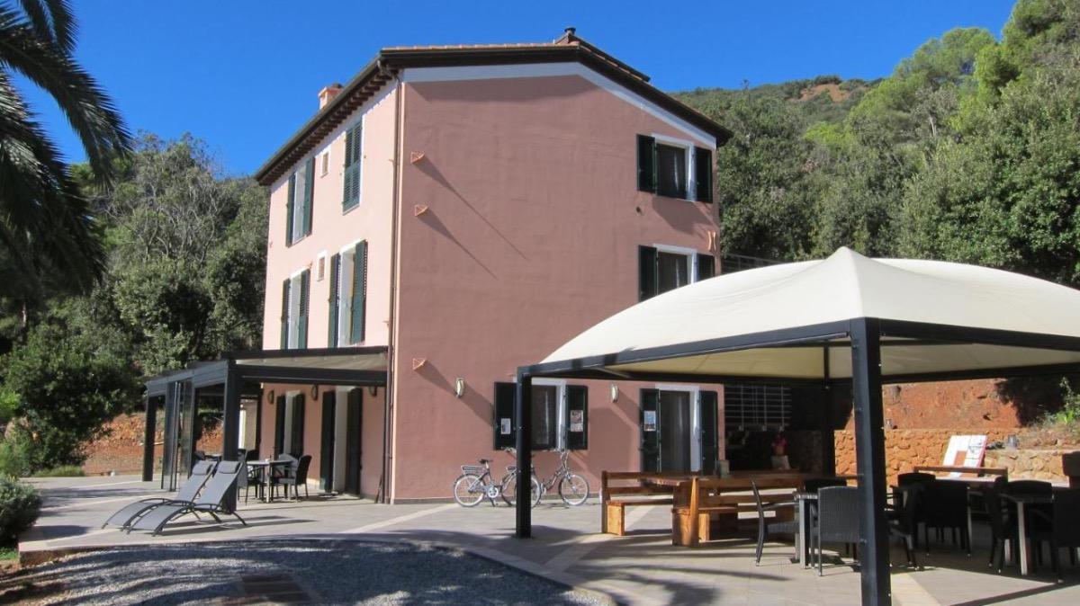 Amidst the beauty of the ancient mines, amidst the warm red of the iron-rich earth and the green of the Mediterranean scrub, this structure stands out for its uniqueness: a typical Tuscan farmhouse surrounded by a characteristic landscape of dry stone walls, centuries-old palms, citrus trees, and woods.