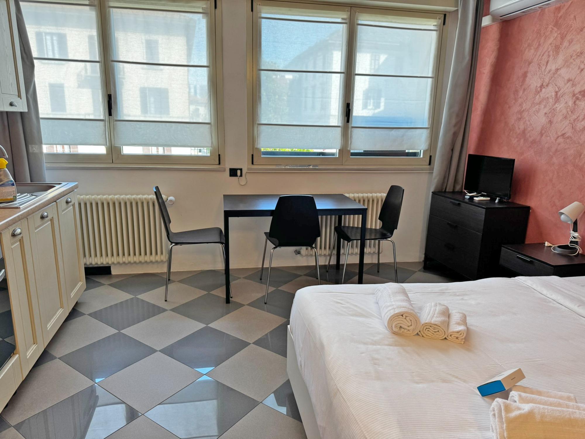 Monolocale con 3 posti letto, angolo cottura e bagno privato (con doccia)