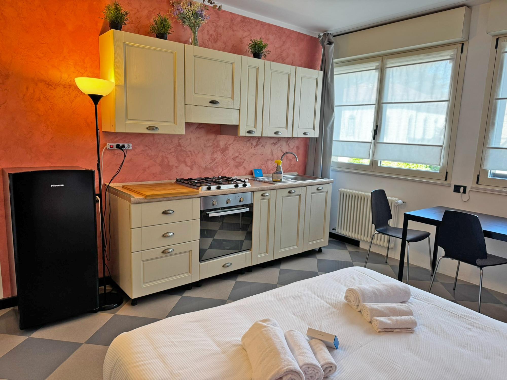 Ogni monolocale di Casa Aurora è dotato di cucina a vista, attrezzata con il necessario.