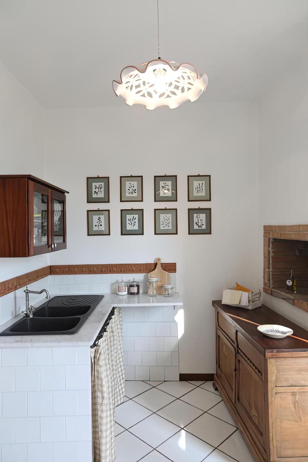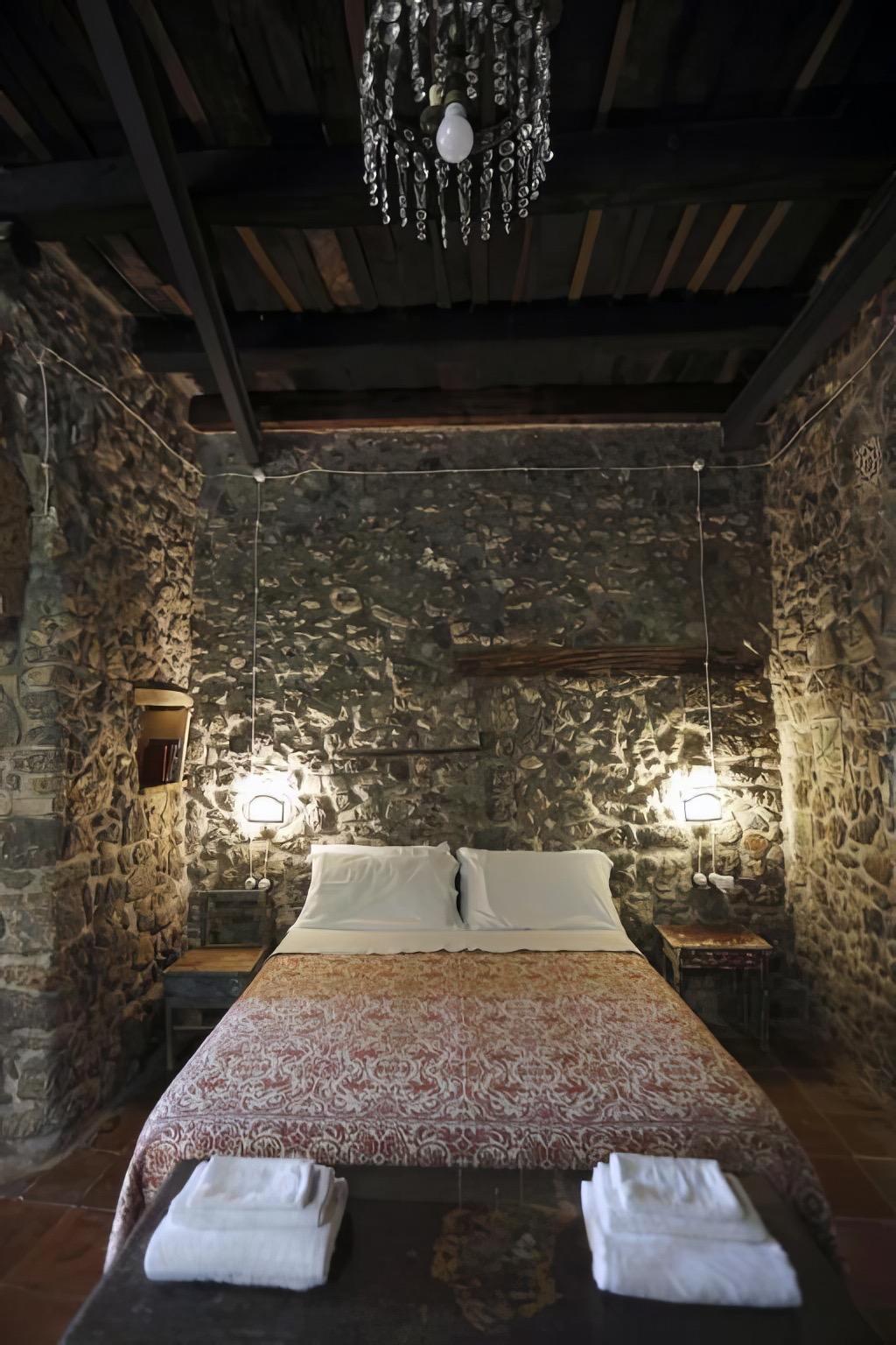 The oil mill serves as the historical heart of the house: a charming room that still houses the millstone, stone basin, and press. The original masonry kitchen, with its plates and oven, reflects the agricultural activities that once animated the village.