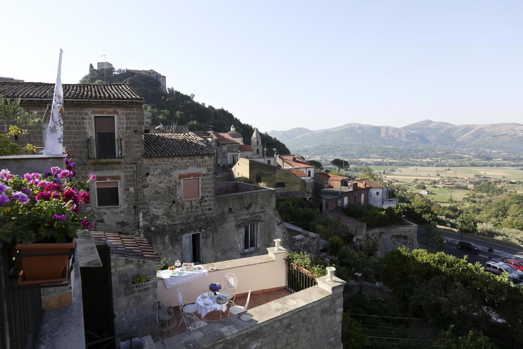 The terrace provides a view that transforms throughout the day: the Lombard castle, the Aragonese Tower, the dome of St. Peter's, and the valley traversed by the Volturno River create a picturesque natural backdrop for your stay. The location is ideal for easily reaching the Royal Palace of Caserta, the Matese mountains, Mount Vesuvius, and Naples airport.