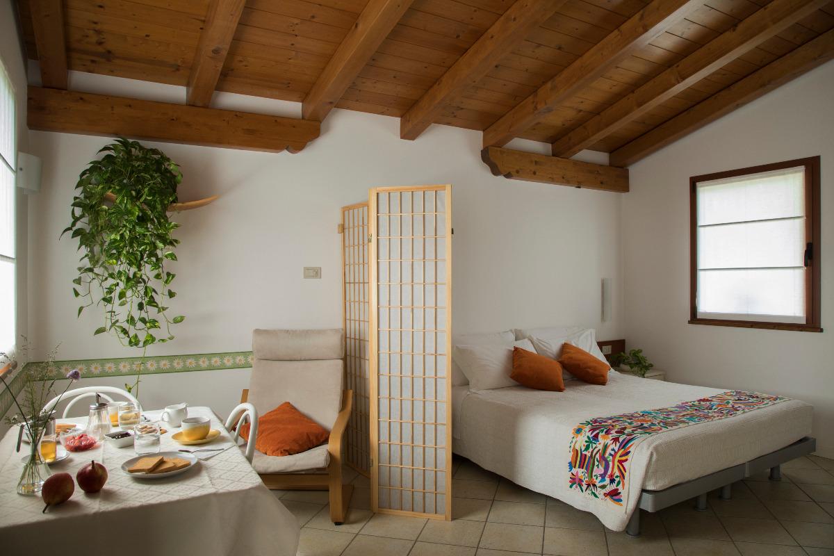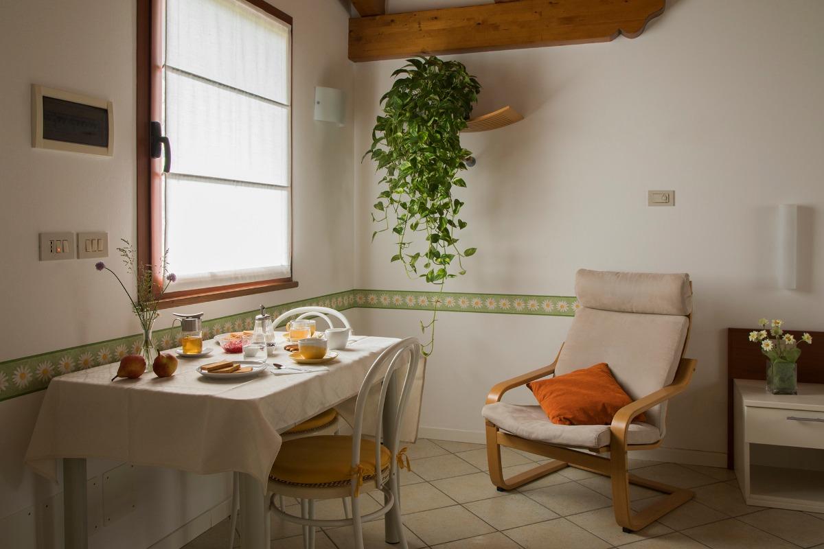 Breakfast is included in the price and served in the annex according to your preferences. It is an Italian-style breakfast with milk, tea, coffee, fruit juices, fresh fruit, biscuits, butter, jams, Nutella, toast, and croissants. Guests can prepare breakfast independently or have it prepared by the hosts.