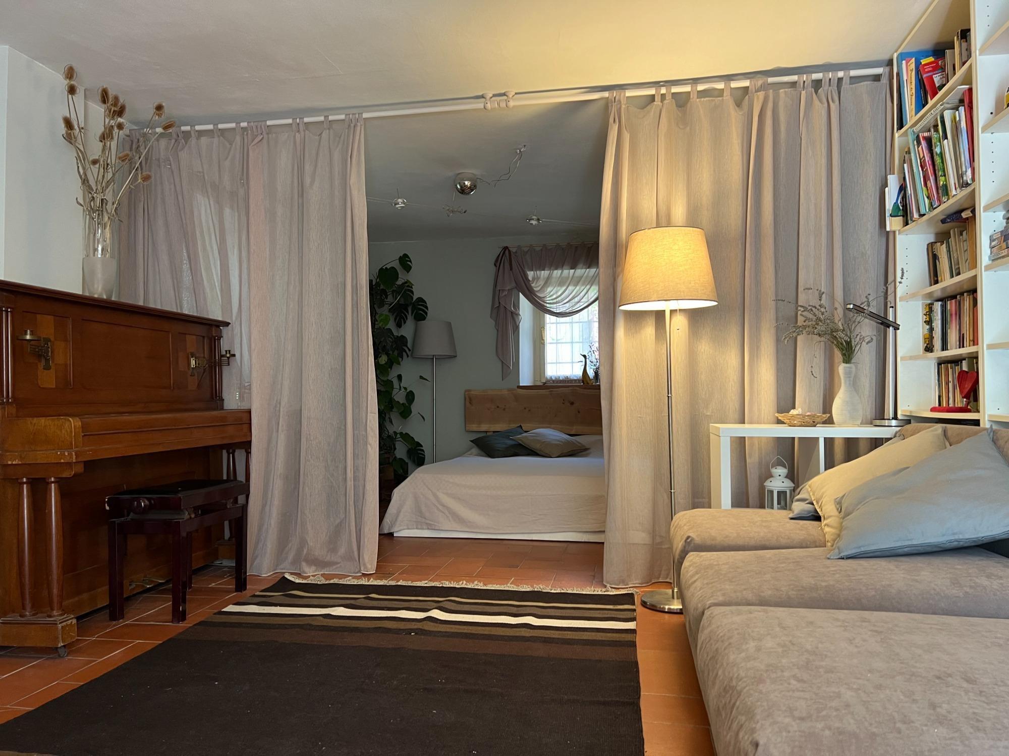Generoso spazio a piano terra con ingresso indipendente e bagno privato, area relax con divano, pianoforte, tavolo e tavolino, libreria e giradischi permetto un'esperienza confortevole e rilassante. Letto matrimoniale e possibilità di terzo letto singolo.