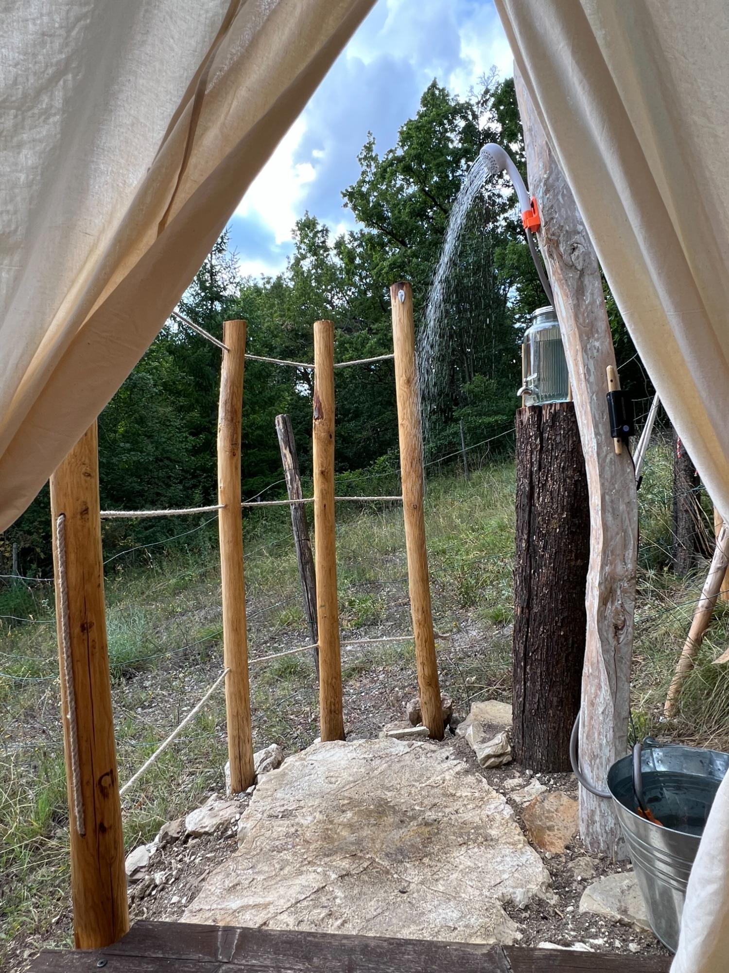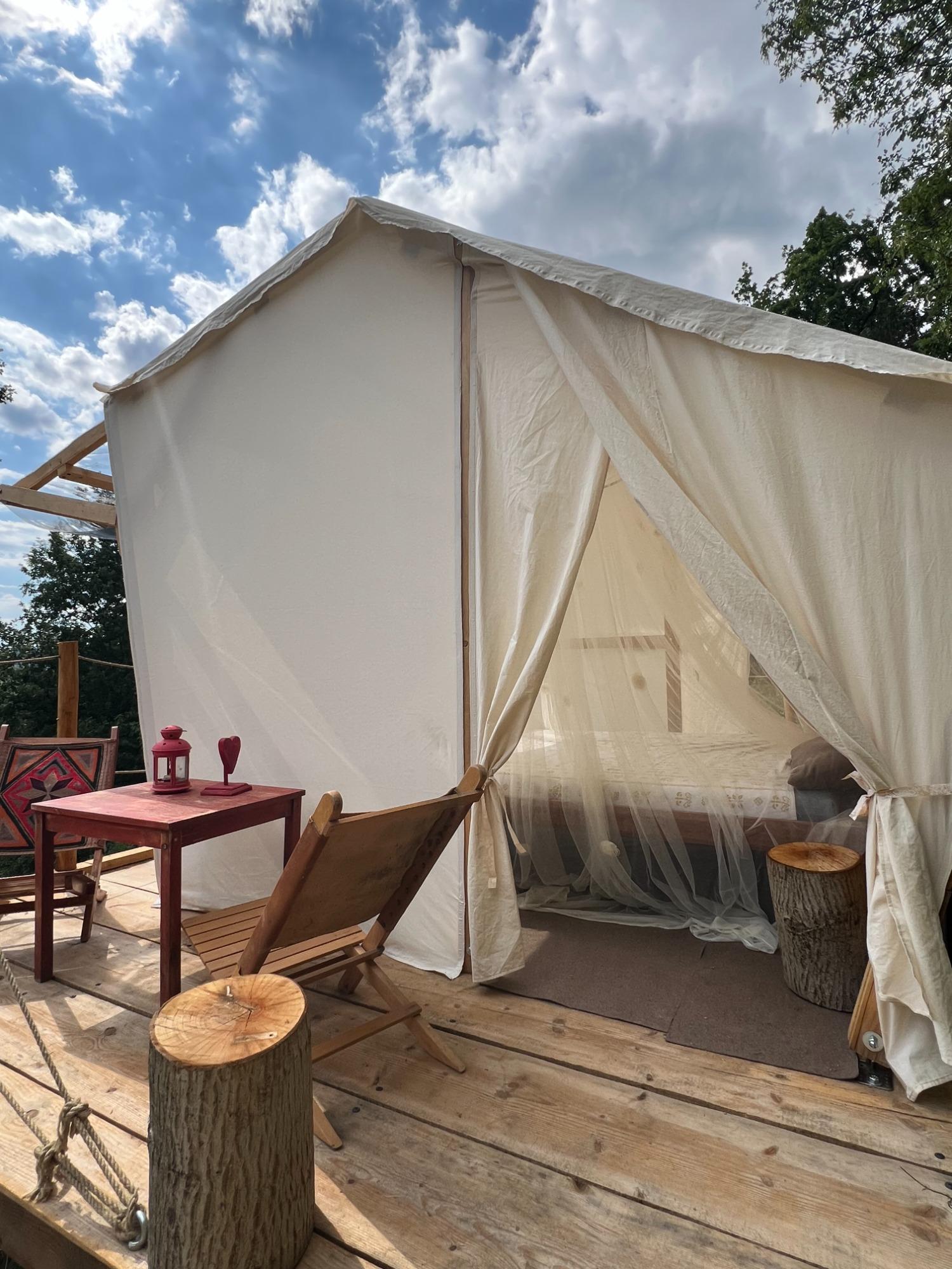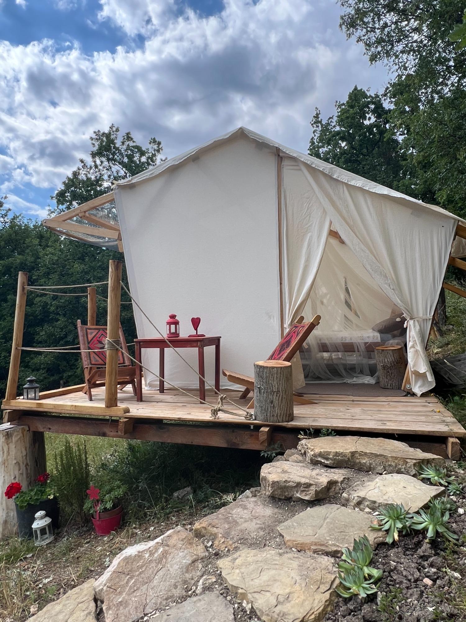 Romantica e riservata casetta/tenda in legno e tessuto indipendente a bordo bosco, essenziale, con letto matrimoniale e vista sul tramonto per godere del contatto diretto con la natura circostante; Quasi ntegralmente ecologica con mini doccia dal secchio e acqua di fonte in contenitore alimentare mentre Toilette e lavandino sono esterni, a circa 50m. Sono in dotazione due lanterne solari e due lampade frontali oltre a biancheria ed acqua in bottiglia. Sono ammessi solo detergenti ecologici (sapone e dentifricio saranno a vostra disposizione). In caso di forte vento o pioggia la prenotazione sarà annullata e subito rimborsata oppure, se disponibile vi verrà proposta una delle camere del B&B allo stesso prezzo. La colazione opzionale, dal valore di 9€ per persona, se desiderata, può essere concordata all'arrivo e verrà servita presso la casetta entro le ore 10.