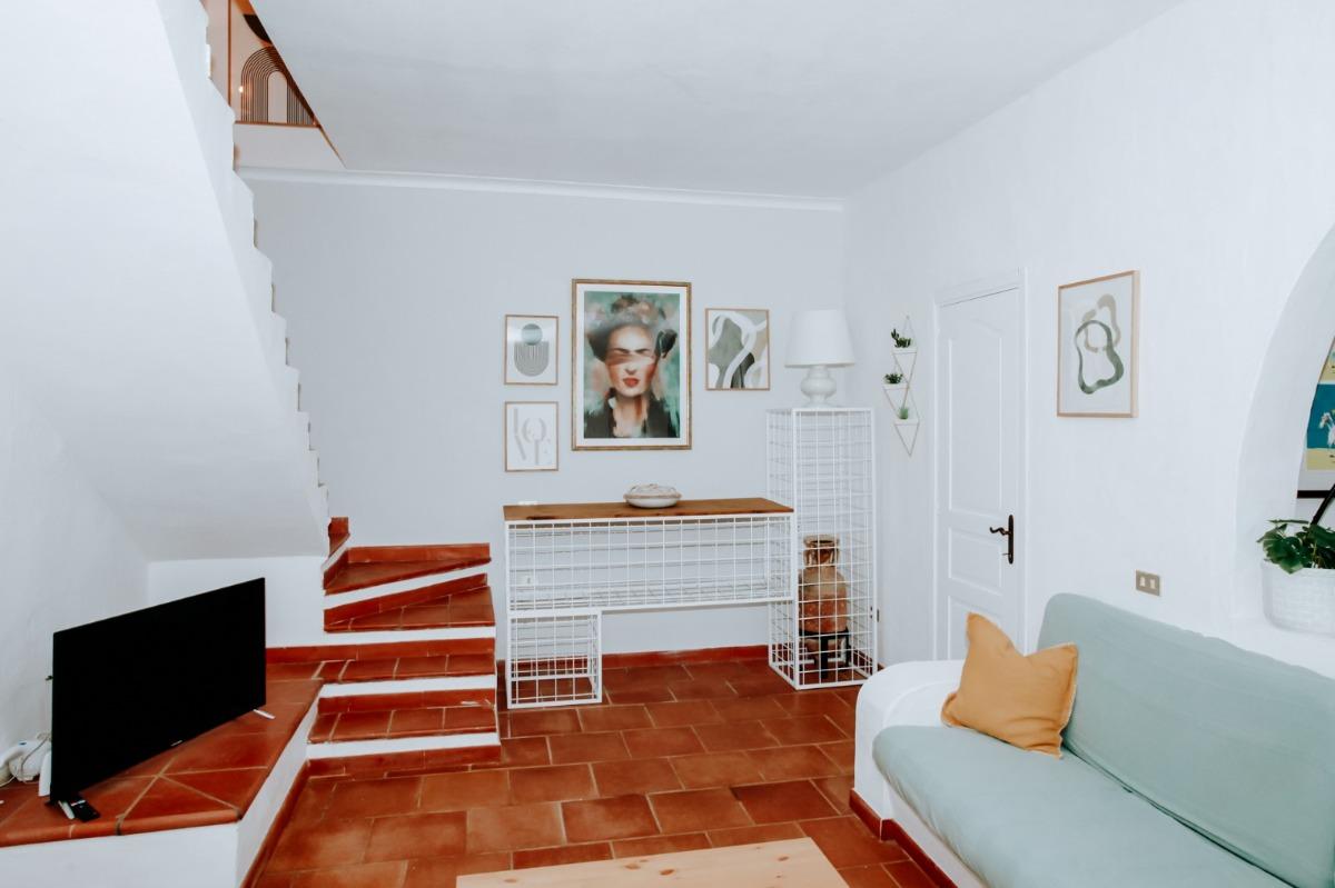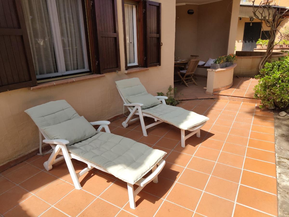 La casa dispone di 2 camere, 2 bagni, ampio soggiorno, cucina e angolo cottura, più un loggiato dove mangiare all'aperto e un bellissimo giardino.