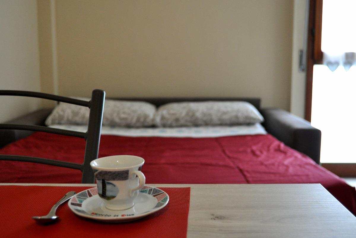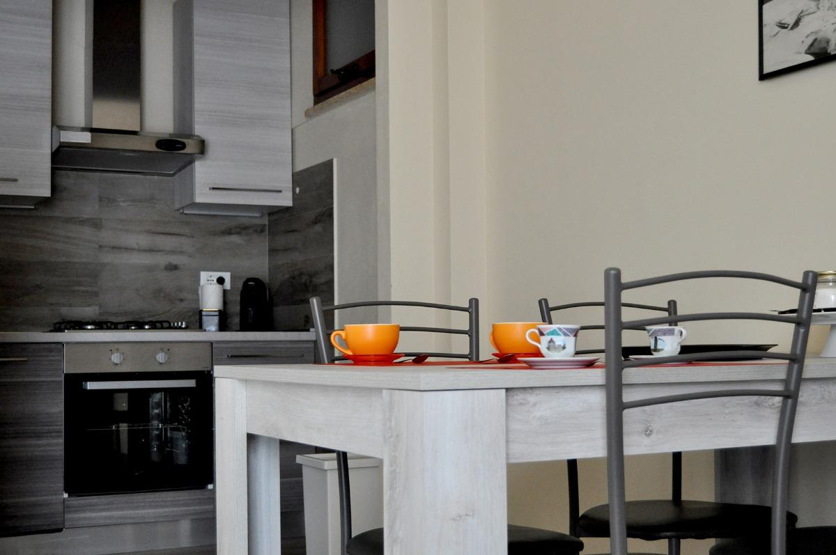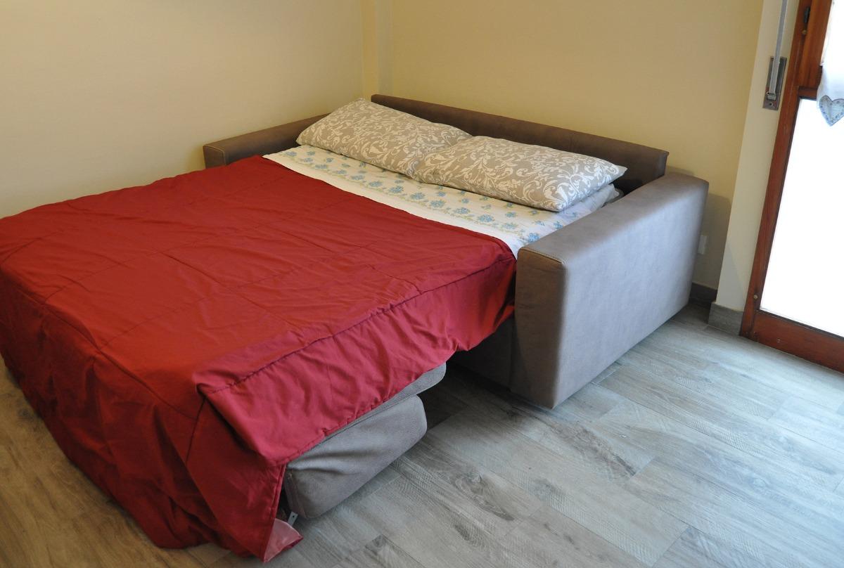 È composto da un ingresso che conduce a un soggiorno con cucina, dotata di lavastoviglie, un comodo divano letto matrimoniale, una camera da letto con letto matrimoniale e un bagno con doccia.