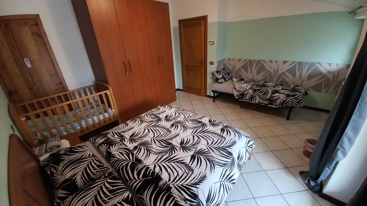 Über eine Innentreppe gelangt man in das zweite Obergeschoss, wo sich zwei Schlafzimmer befinden: ein geräumiges Doppelzimmer, in dem ein Einzelbett und ein Kinderbett hinzugefügt werden können, sowie ein kleines Zimmer mit zwei zusammenschiebbaren Einzelbetten. Diese Etage wird durch ein zweites Badezimmer mit Sanitäranlagen und einer kleinen Badewanne mit Duschfunktion ergänzt. Die Balkone, die von der Küche, dem Wohnzimmer und beiden Schlafzimmern zugänglich sind, bieten Außenbereiche zum Entspannen.