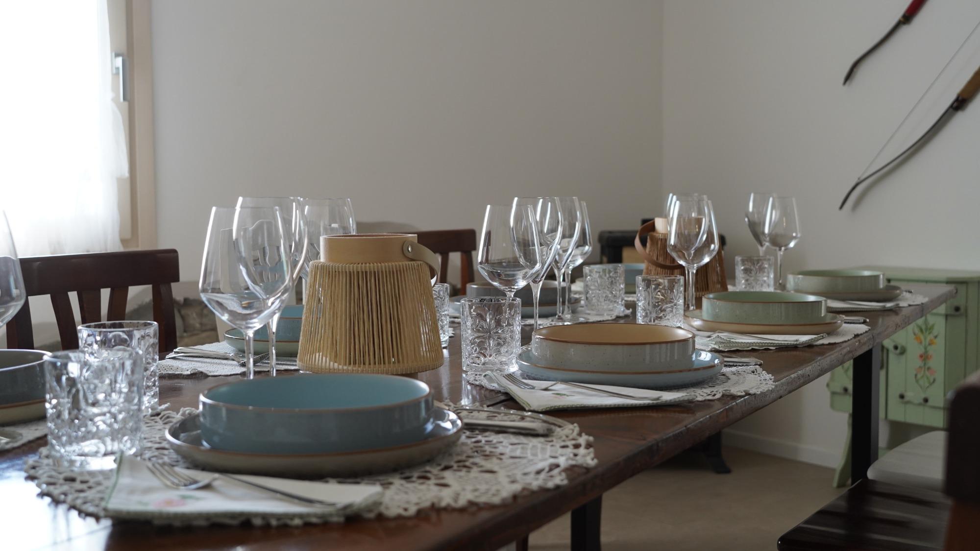Dinners are held a couple of times a week, depending on the season and availability. In the summer, guests dine outdoors in the spacious garden, surrounded by soft lighting and fresh air, while in the colder months, they gather in the heated indoor lounge for a warm and relaxing atmosphere. This setting is also ideal for socializing: when a single group does not fill the table, the experience is shared with other guests or new travelers, exchanging stories and smiles over a delicious plate of Friulian cuisine.