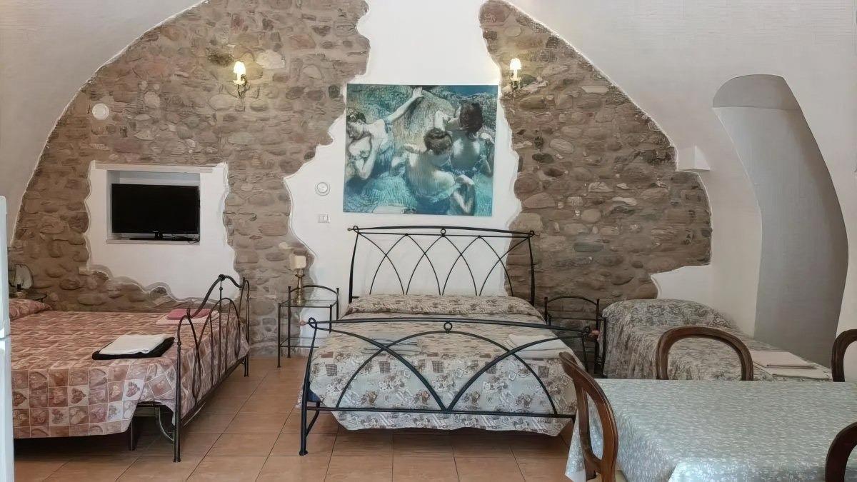 Currently, the B&B offers two distinct living units, perfectly equipped to ensure comfort and privacy. The "Iole" open space, a large 43 sqm room located on the ground floor, has an independent entrance, underfloor heating, and an elegant breakfast area with elements made of local marble. During the summer, guests can enjoy a cozy porch in the private courtyard. The second unit, ideal for families and couples, is located on the first floor and includes a double bedroom and a small bedroom, with a shared bathroom and a separate breakfast area to maximize safety and privacy.