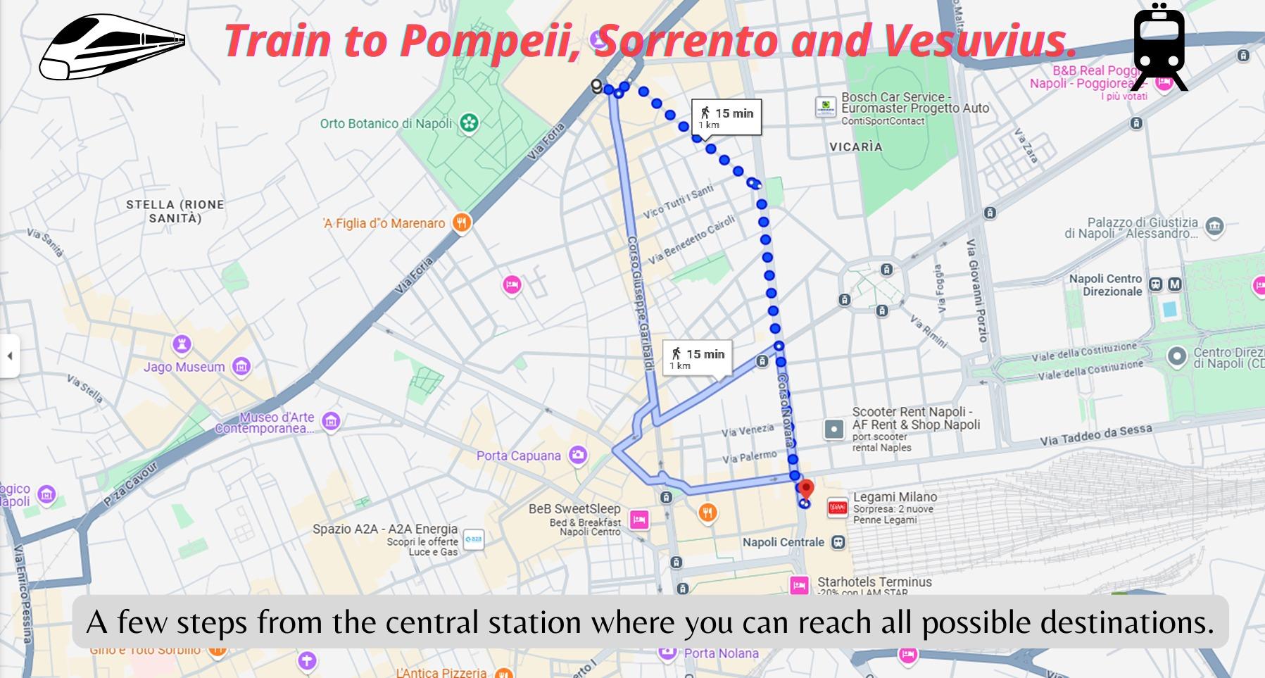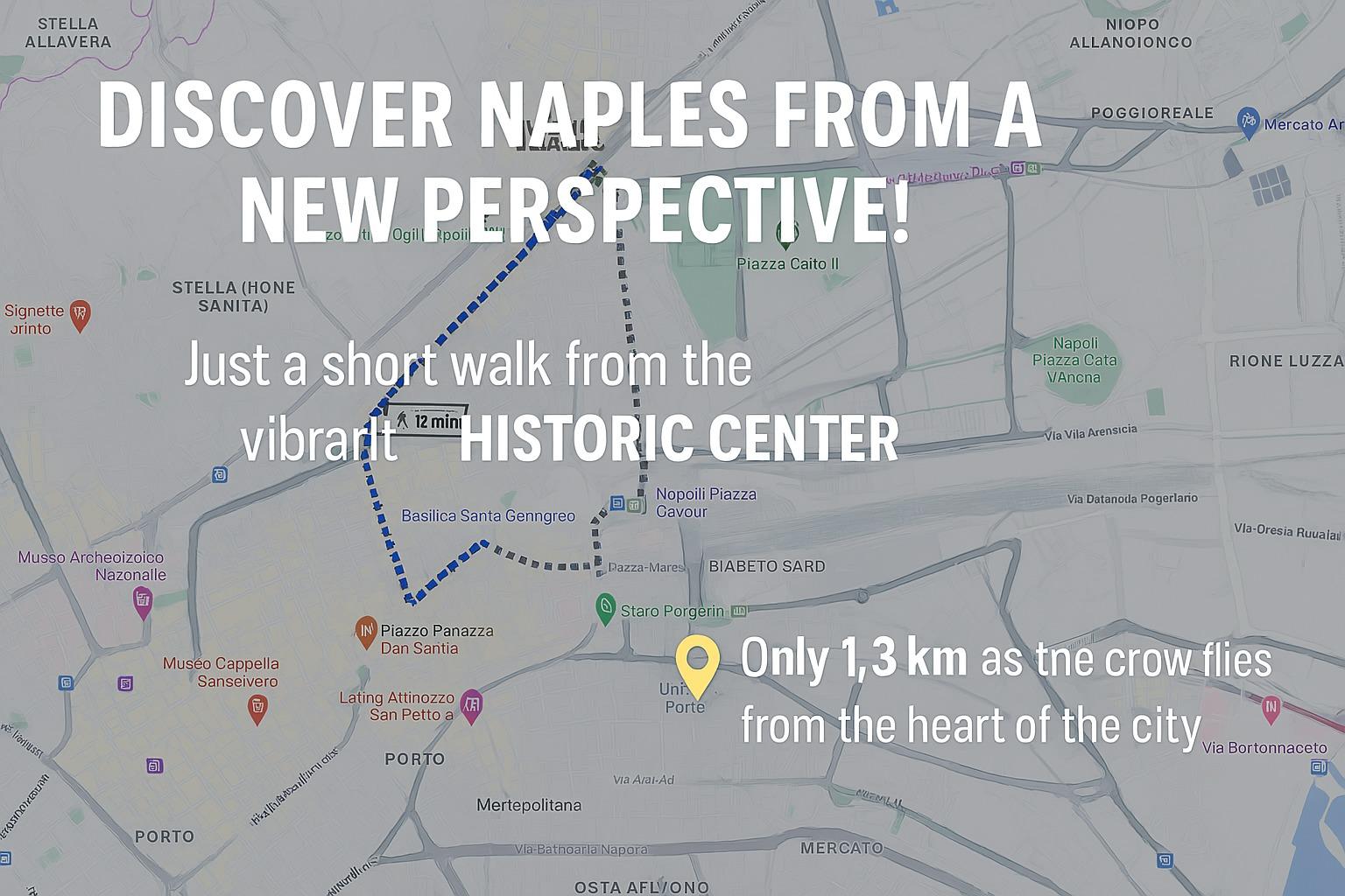 La sua posizione centrale è un grande vantaggio: l’aeroporto è raggiungibile in soli 5 minuti di auto, mentre la stazione centrale dista appena 10 minuti a piedi. Il porto, da cui partono i traghetti per Capri, Ischia e Procida, è facilmente raggiungibile con un breve tragitto in autobus.