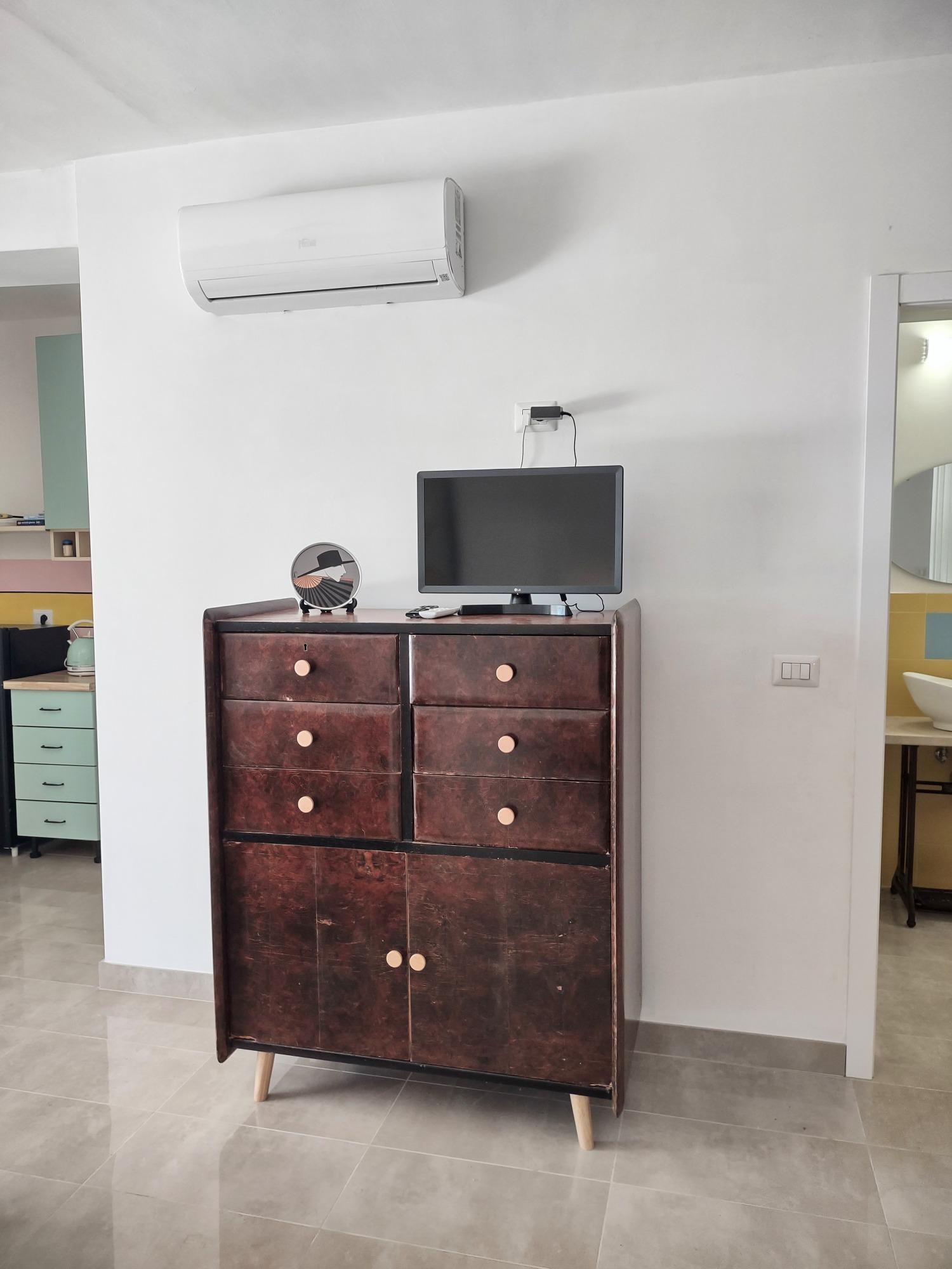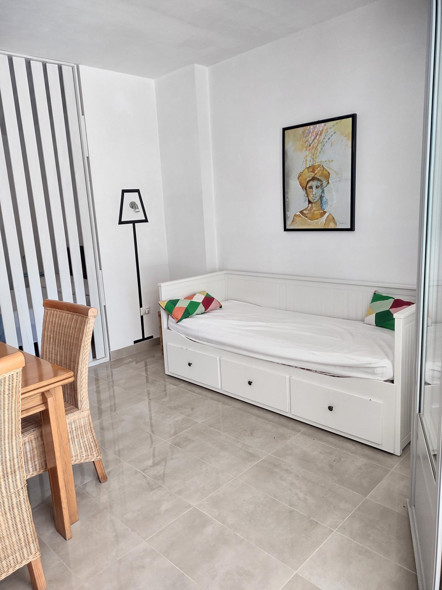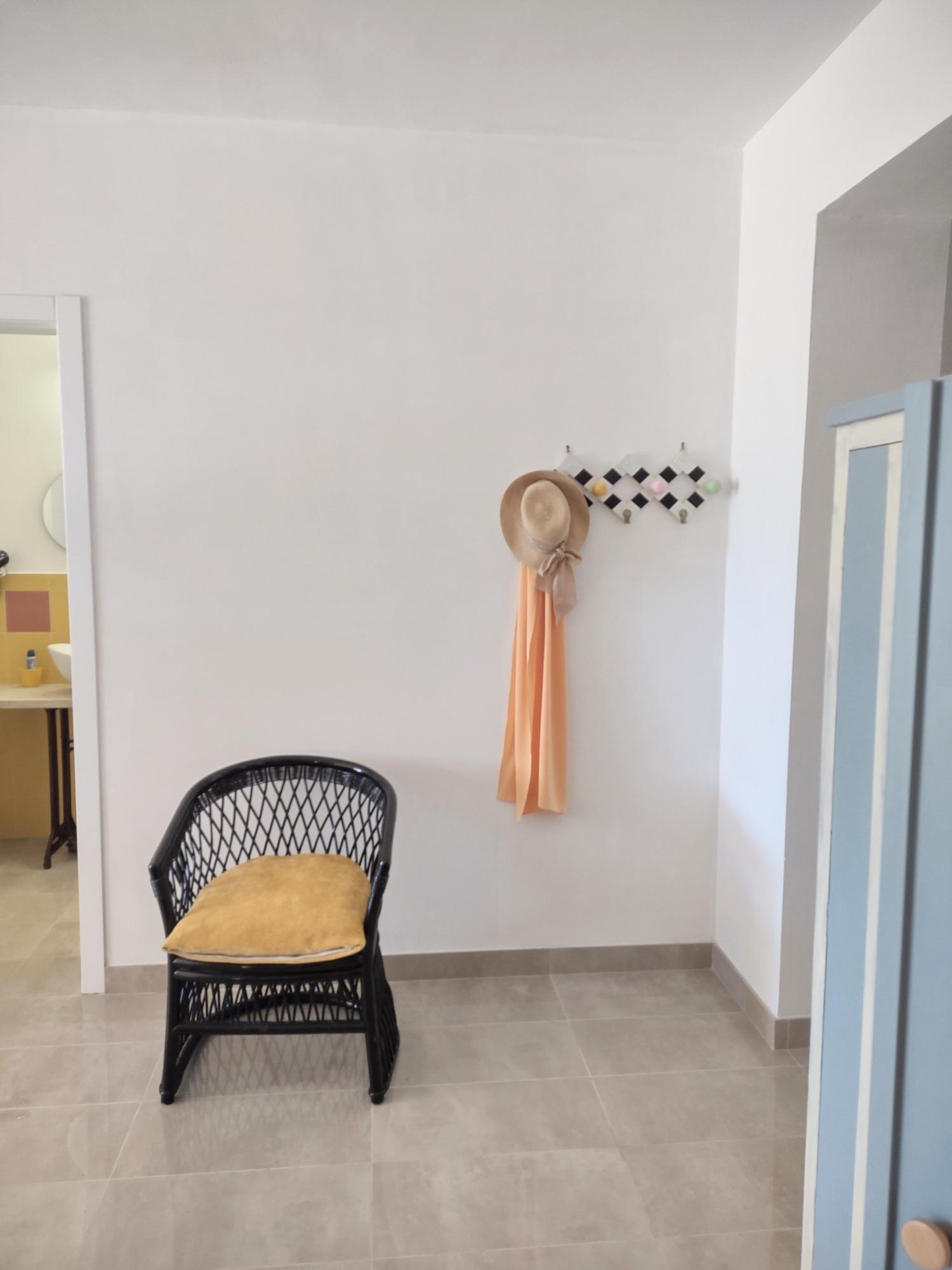 L’appartamento dispone di soggiorno con cucina, bagno, zona letto e guardaroba, oltre a una veranda privata dove rilassarsi in totale tranquillità. All’esterno sono disponibili una doccia e un barbecue per vivere appieno l’atmosfera estiva. La proprietà condivide il giardino, il piazzale e il parcheggio interno con altri due miniappartamenti, ma ogni unità ha il proprio spazio veranda delimitato da divisori per garantire la privacy.