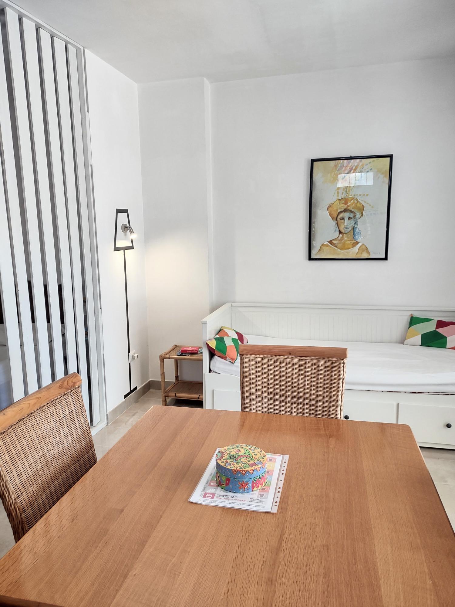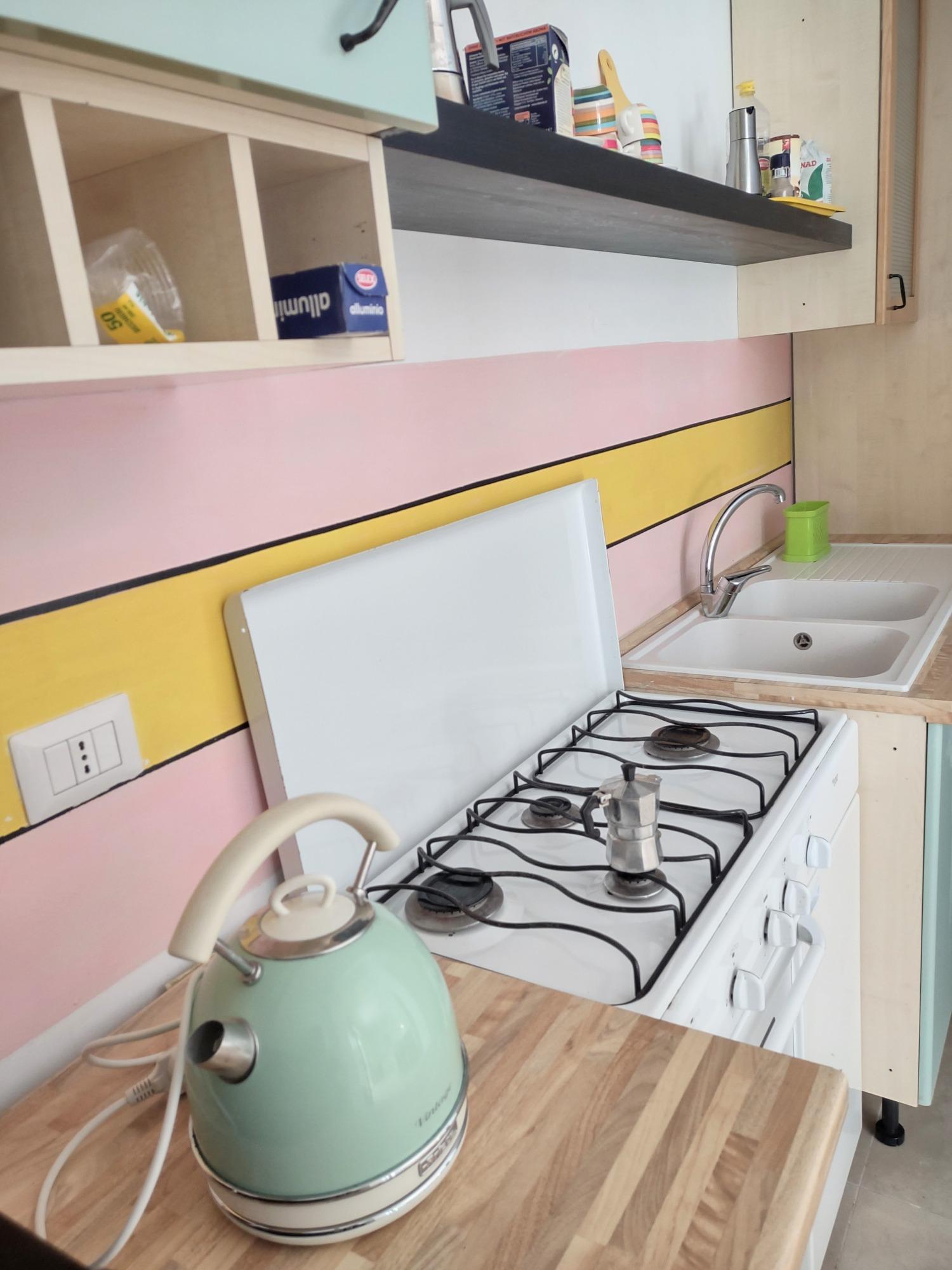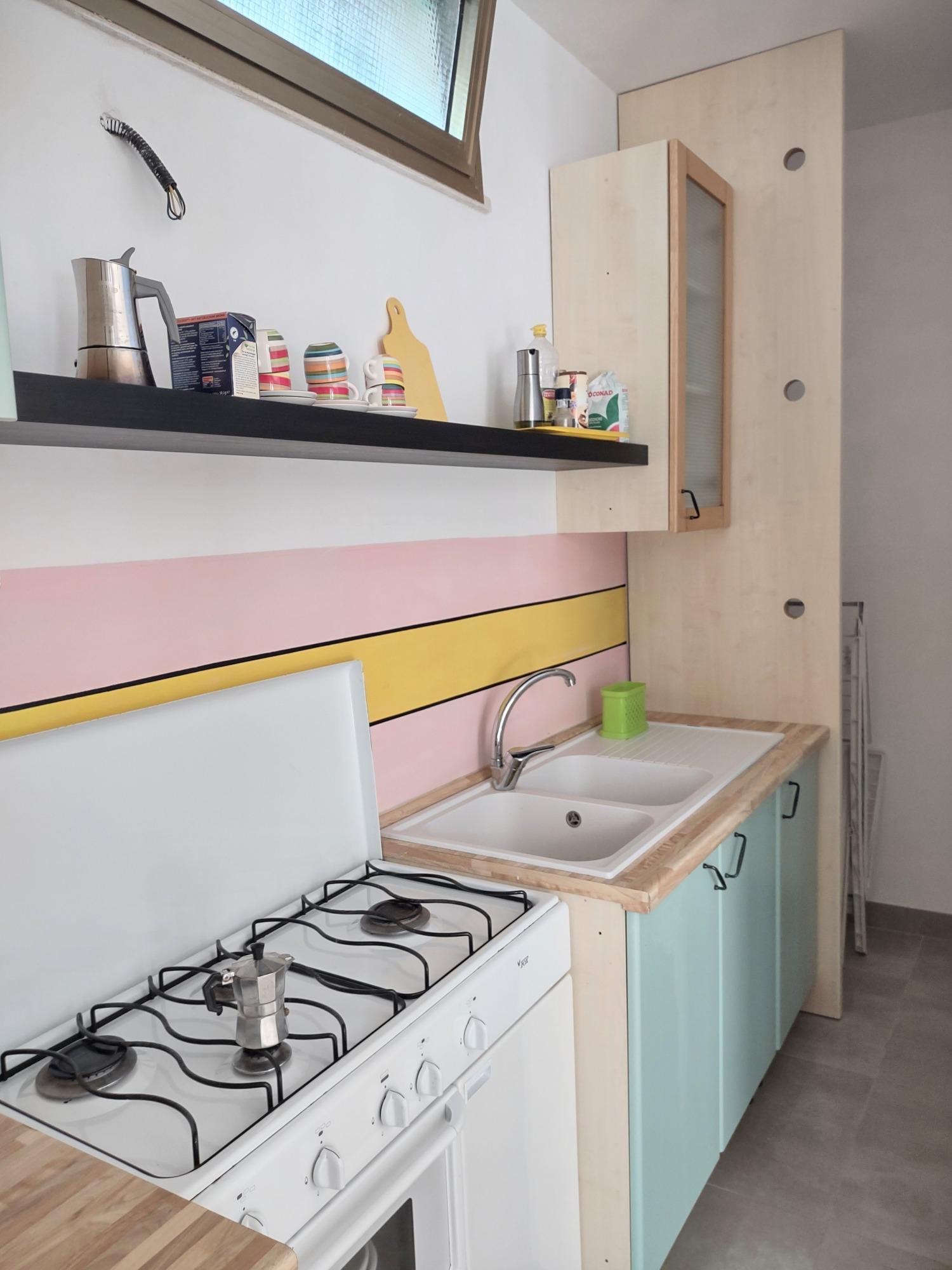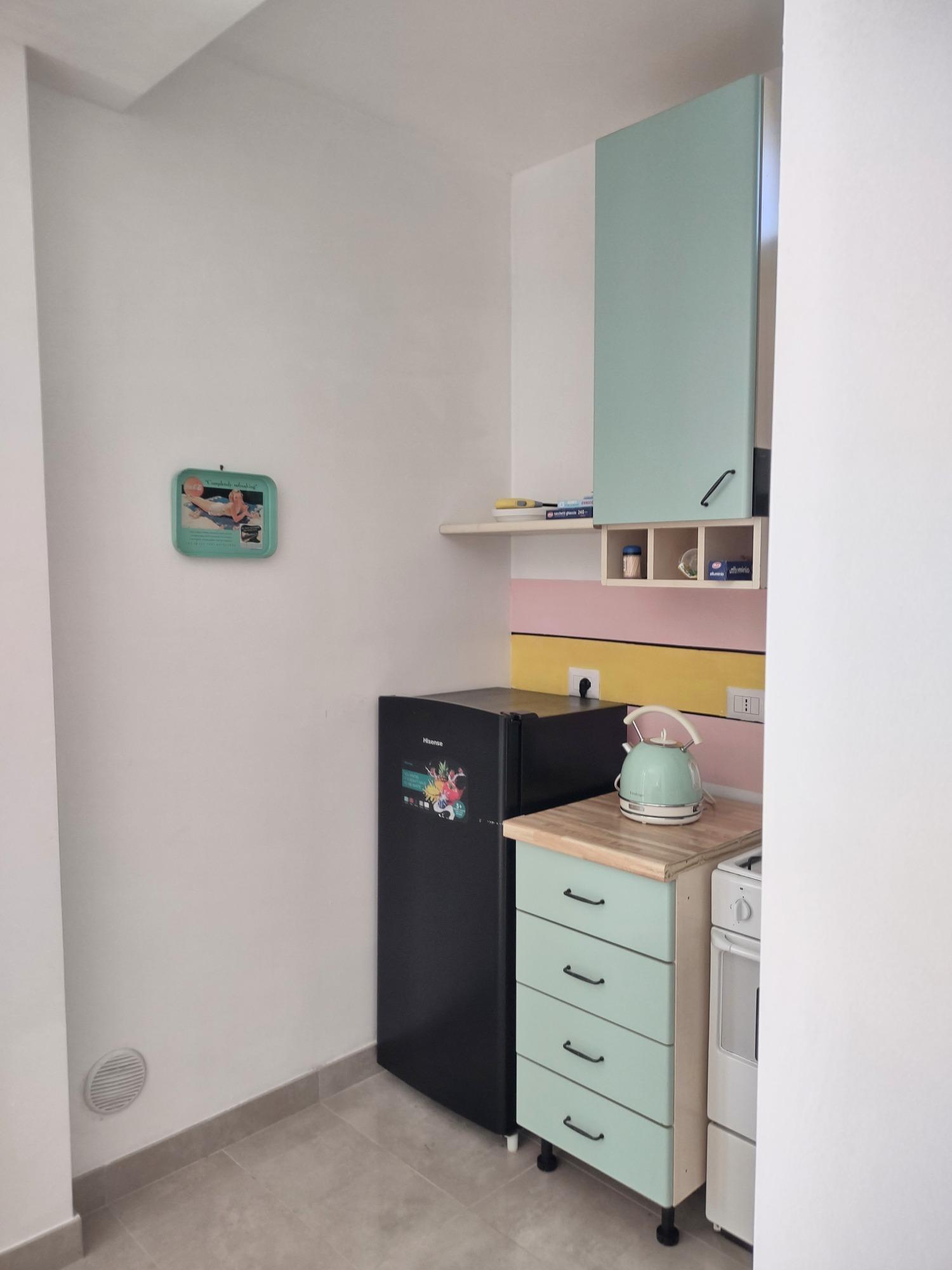L’appartamento dispone di soggiorno con cucina, bagno, zona letto e guardaroba, oltre a una veranda privata dove rilassarsi in totale tranquillità. All’esterno sono disponibili una doccia e un barbecue per vivere appieno l’atmosfera estiva. La proprietà condivide il giardino, il piazzale e il parcheggio interno con altri due miniappartamenti, ma ogni unità ha il proprio spazio veranda delimitato da divisori per garantire la privacy.