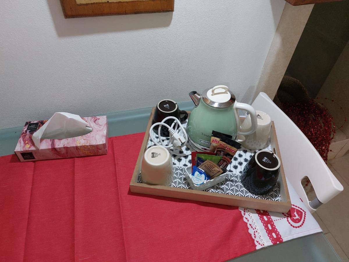 Our breakfast, included in the room price, offers each person a juice, a croissant, toast, biscuits, Nutella, jam, as well as a bottle of water in the refrigerator, and coffee and herbal teas. For our most demanding customers, we offer a continental breakfast at a nearby restaurant and provide options for gluten-free breakfast at no additional cost.