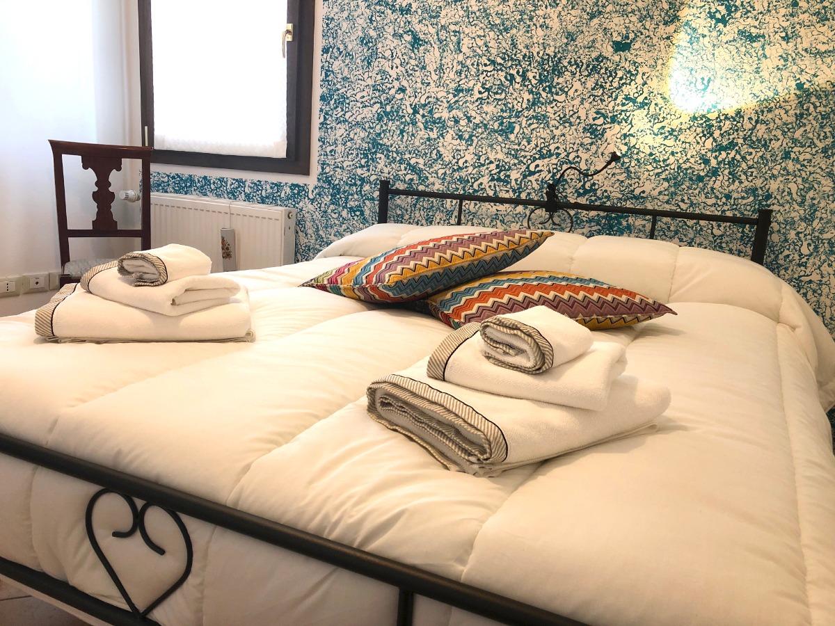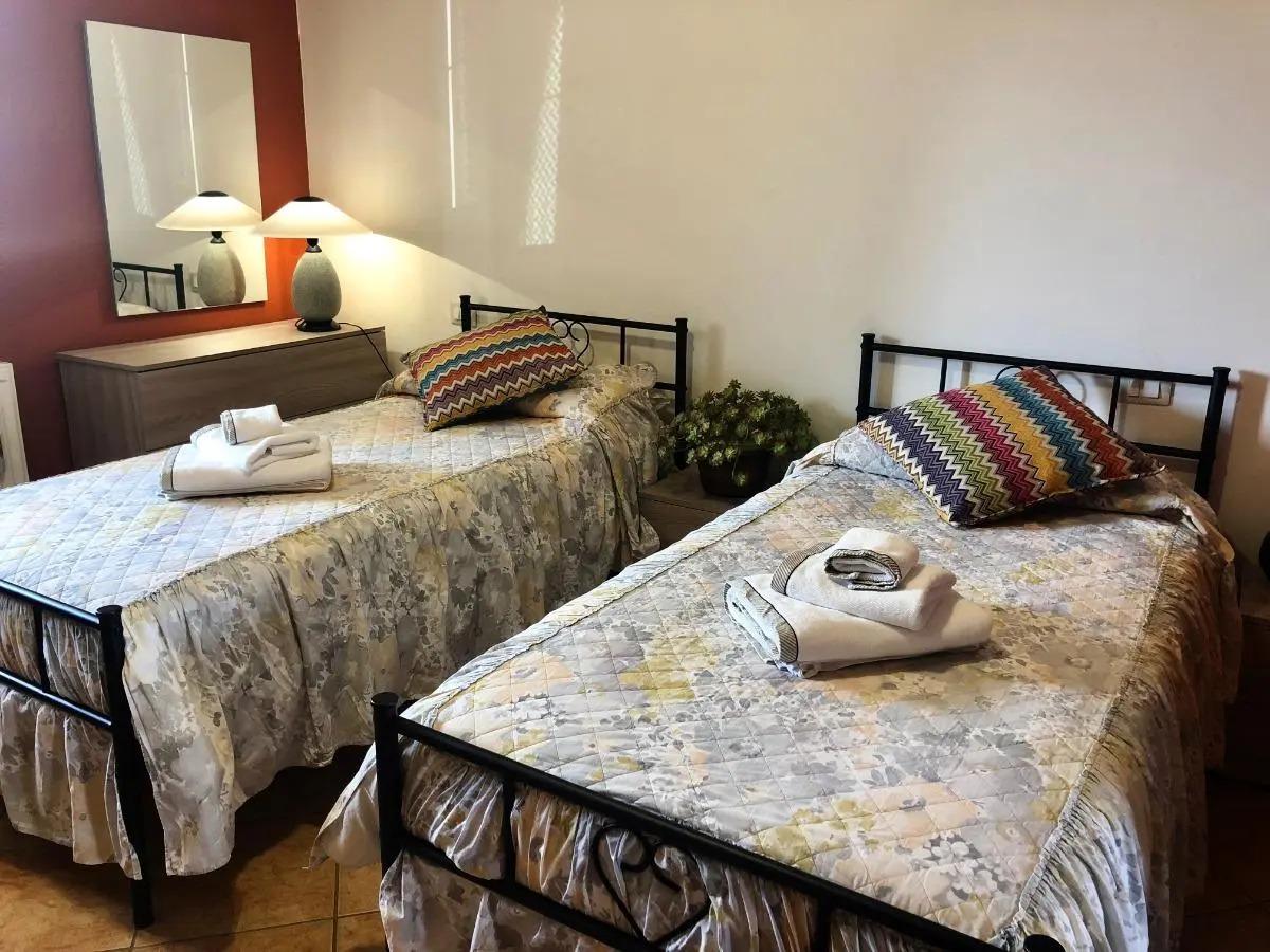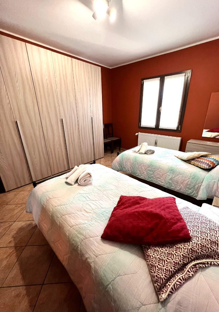 L'appartamento è riservato esclusivamente agli ospiti e si trova all'interno di una villa immersa in un ampio giardino. Dispone di due camere da letto: una con un letto matrimoniale e l'altra con due letti singoli. Inoltre, c'è la possibilità di aggiungere altri due posti letto grazie a un comodo divano letto.