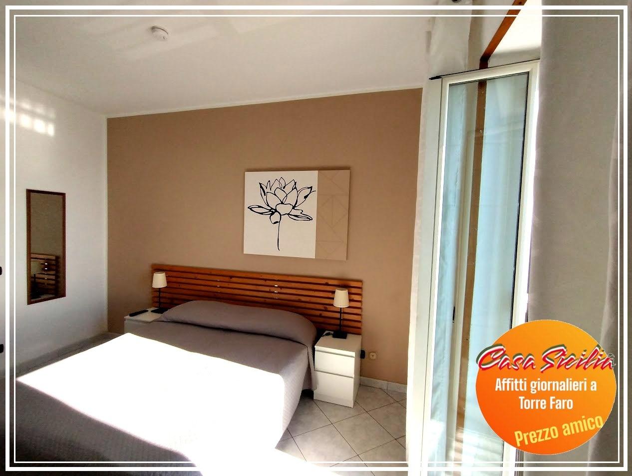A Torre Faro, di fronte l'incantevole Stretto di Messina c'è Casa Sicilia. Delizioso e confortevole appartamentino disposto al primo, su unico livello. Composto da due vani: cucina/soggiorno (dotata di un divano letto da una piazza e mezza), camera da letto (con possibilità di letti separabili o aggiuntivi) ed un comodo bagno. La casa si trova in prossimità di numerose attività e servizi di tipo commerciale (supermercati, farmacia, edicola, posta, bar, pizzerie, ristoranti, strutture balneari, parchi gioco), strutture sportive, di svago e di intrattenimento serale e notturno ma soprattutto le spiagge di due mari (lo Ionio ed il Tirreno) ricchi di vita, dalle acque cristalline con dei fondali mozzafiato.