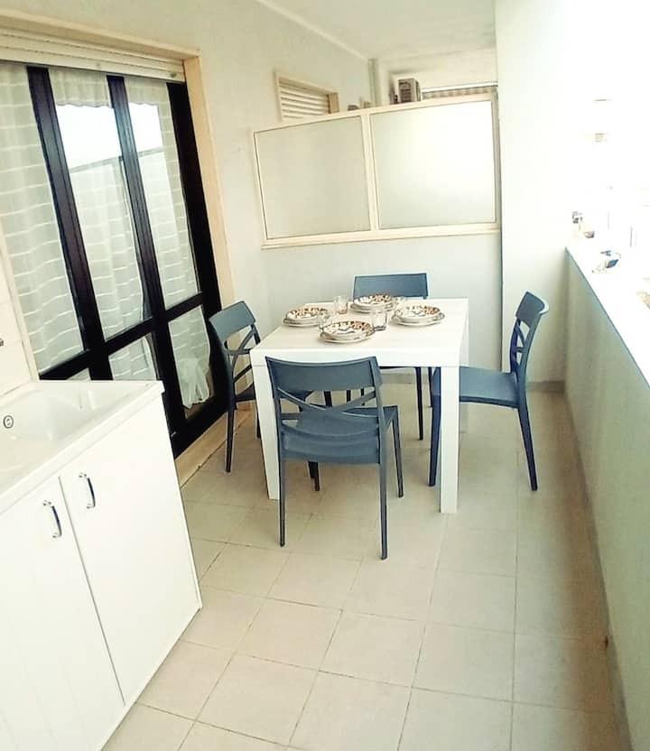 Fiore all’occhiello dell’appartamento è l’ampio terrazzo vista mare, arredato con tavolo e sedute, perfetto per pranzi e cene all’aperto o per godersi la brezza serale. L’alloggio è climatizzato e si trova in prossimità dei principali luoghi della movida notturna di Baia Verde, risultando perfetto sia per famiglie sia per gruppi di amici.
