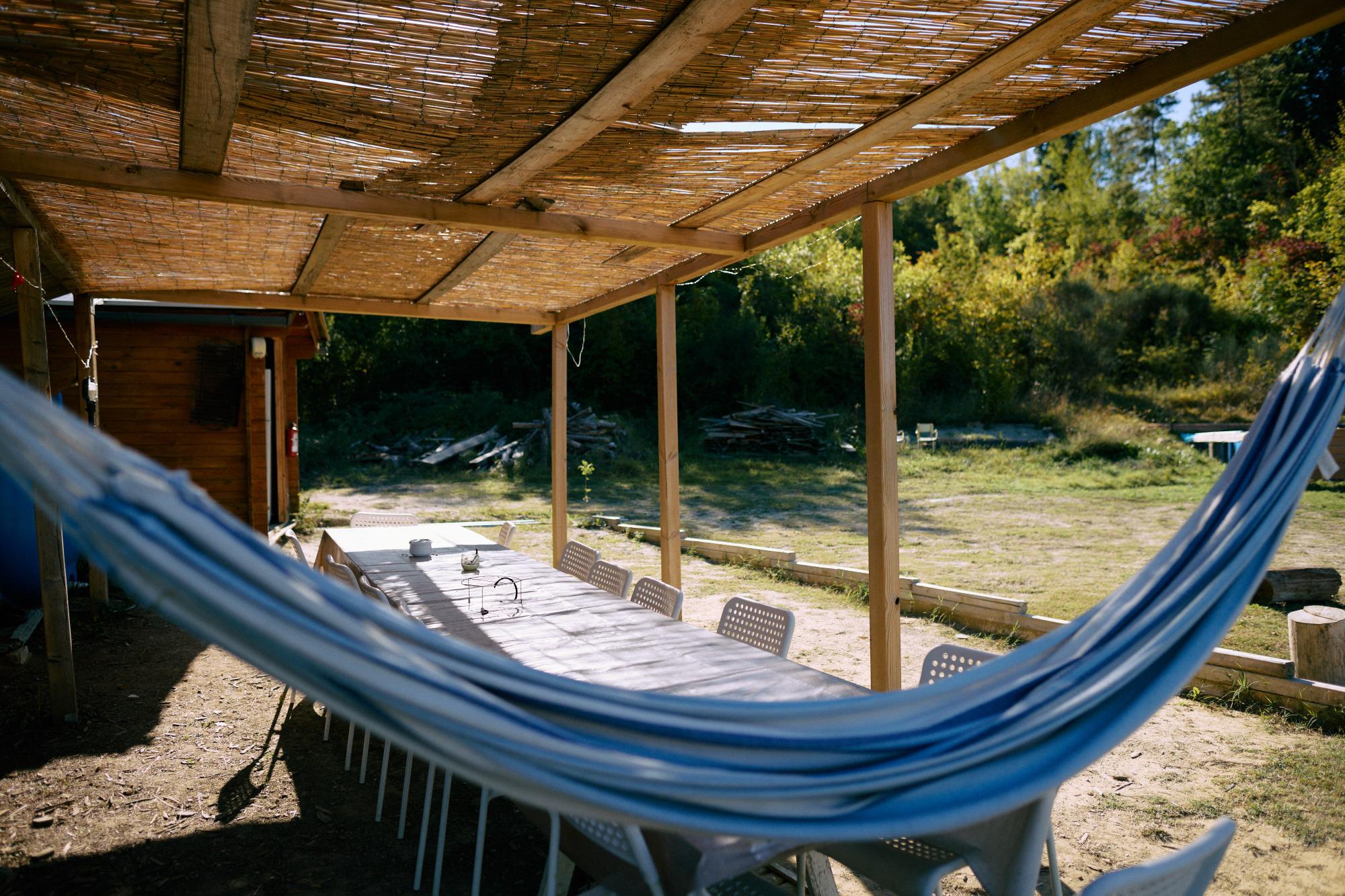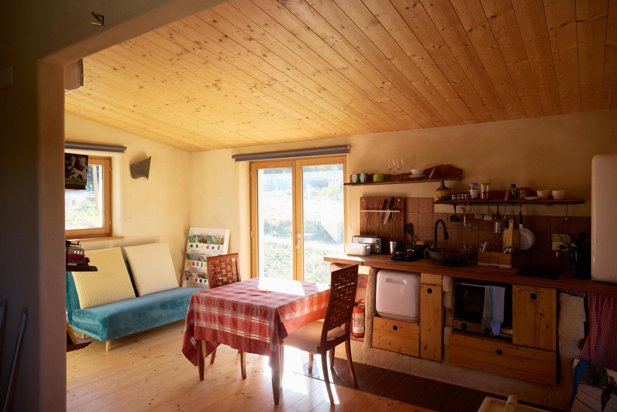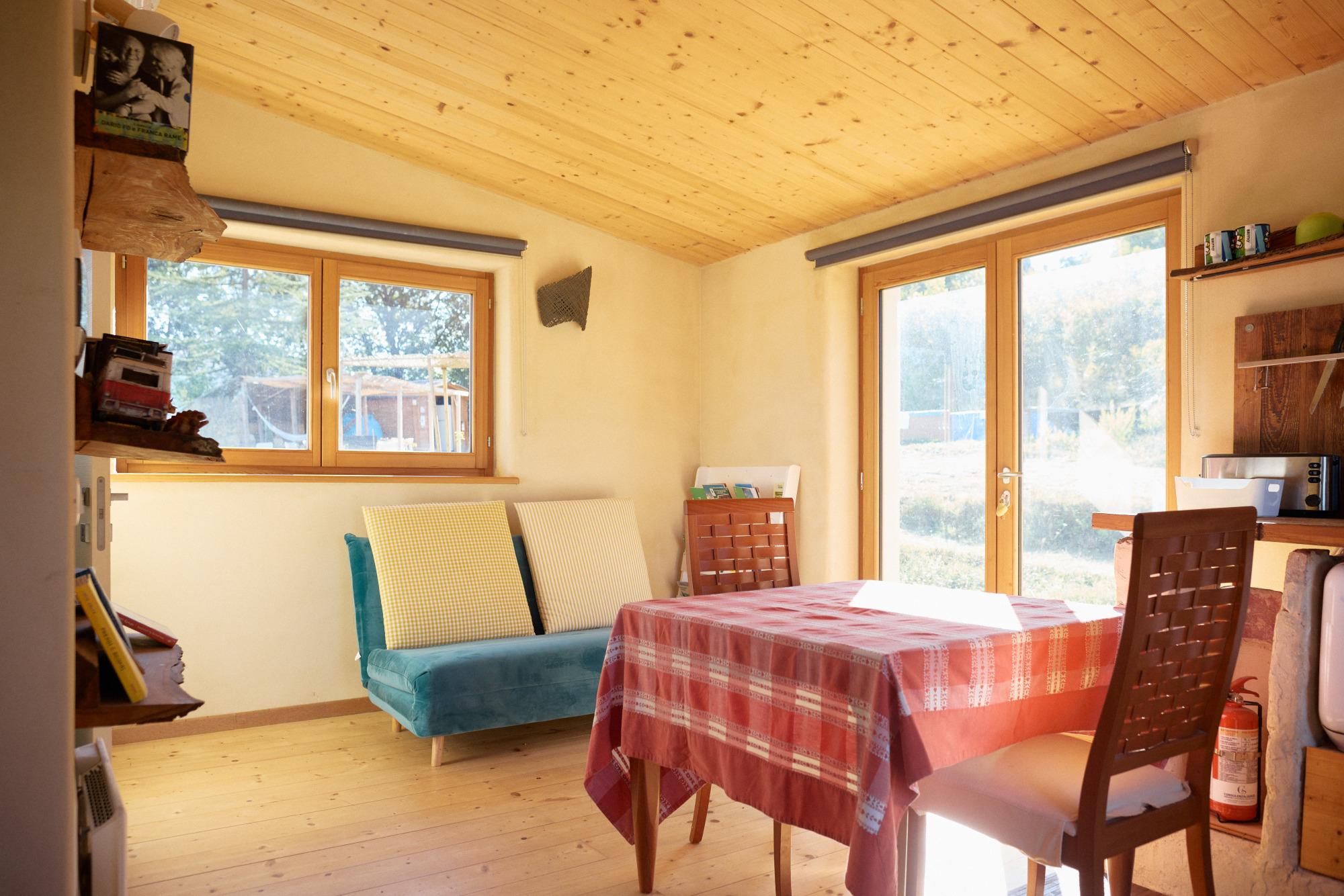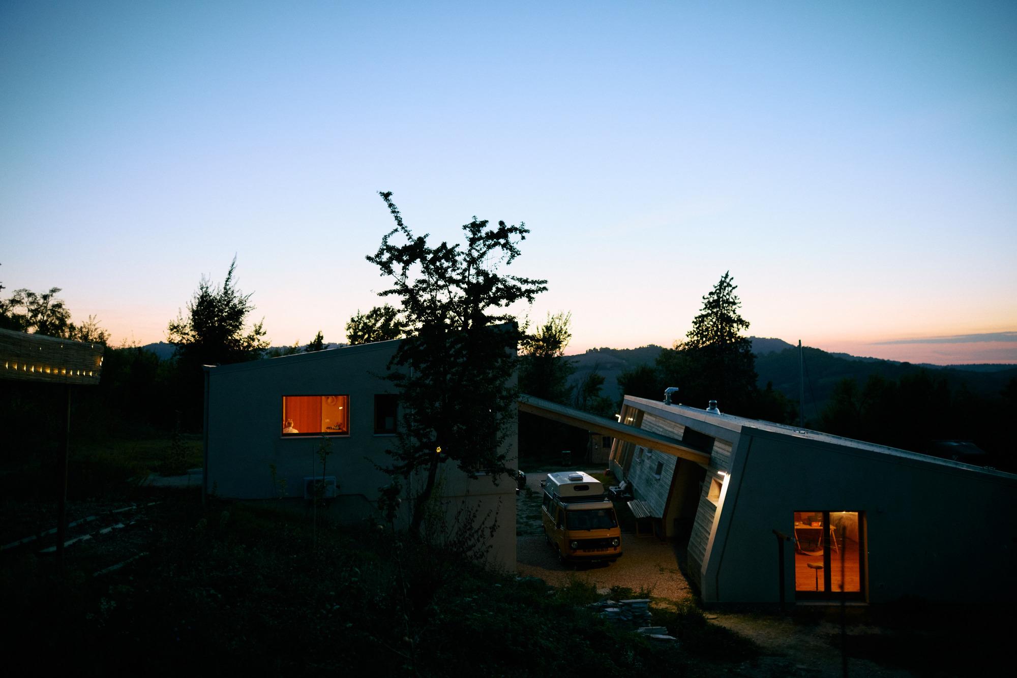 Toda la estructura está construida según los principios de la bioconstrucción, utilizando materiales naturales como madera, paja y tierra cruda. Completada en 2023, cuenta con tecnologías de vanguardia como una bomba de calor, un sistema de recuperación de agua de lluvia y baterías de almacenamiento de energía, que la convierten en un modelo de sostenibilidad y eficiencia energética.