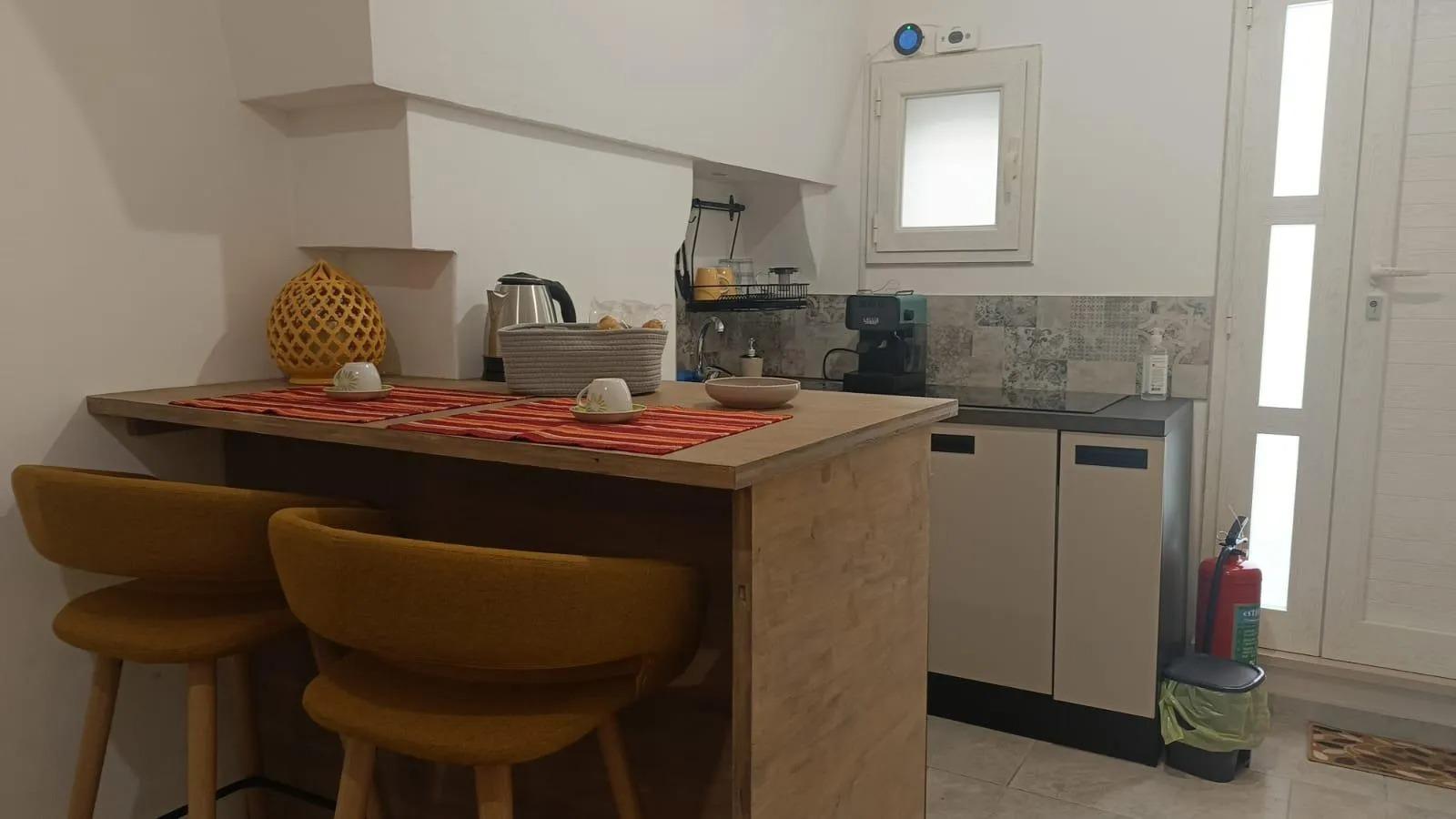 L’appartamento di circa 35 mq dispone di una zona living con cucina attrezzata, tavolo da pranzo e divano, una camera matrimoniale accogliente e un bagno moderno. Sono presenti aria condizionata, Wi-Fi gratuito, TV, set di cortesia e un piccolo welcome kit con prodotti tipici locali.