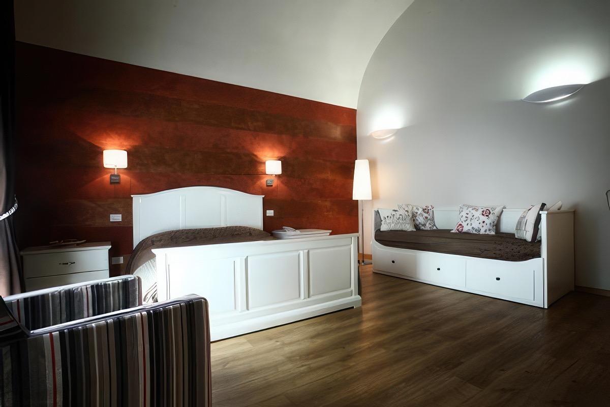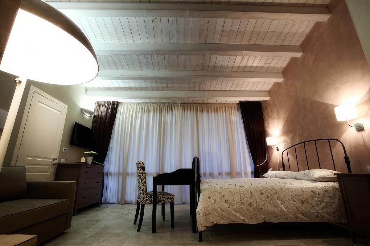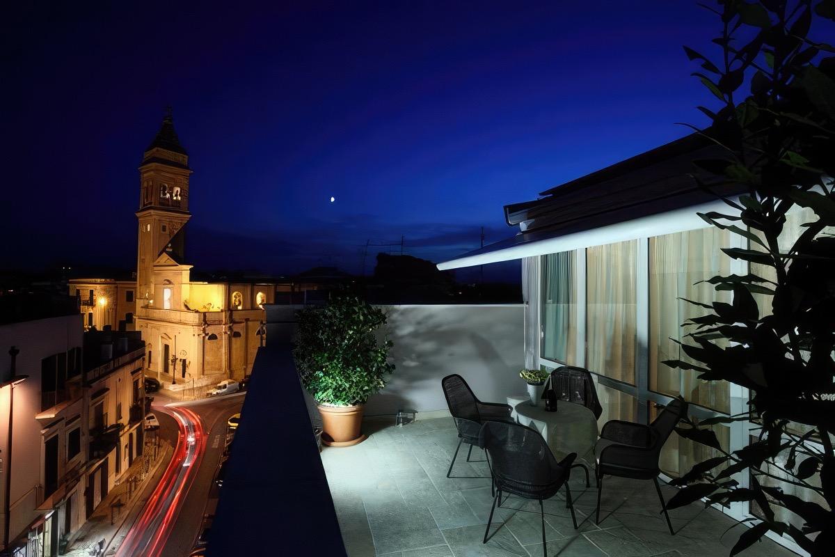 The structure is spread over 3 floors: on the ground floor, you will find the reception area and the breakfast room, while the rooms are located on the second floor. Finally, on the top floor, you will be amazed by the fabulous suites, where the breathtaking view of Gioia del Colle takes center stage. These suites are characterized by their spacious vaulted ceilings, typical of Gioia del Colle's architecture. However, it is the entire structure that encompasses many architectural elements dear to the city, such as arches, vaults, and stone.