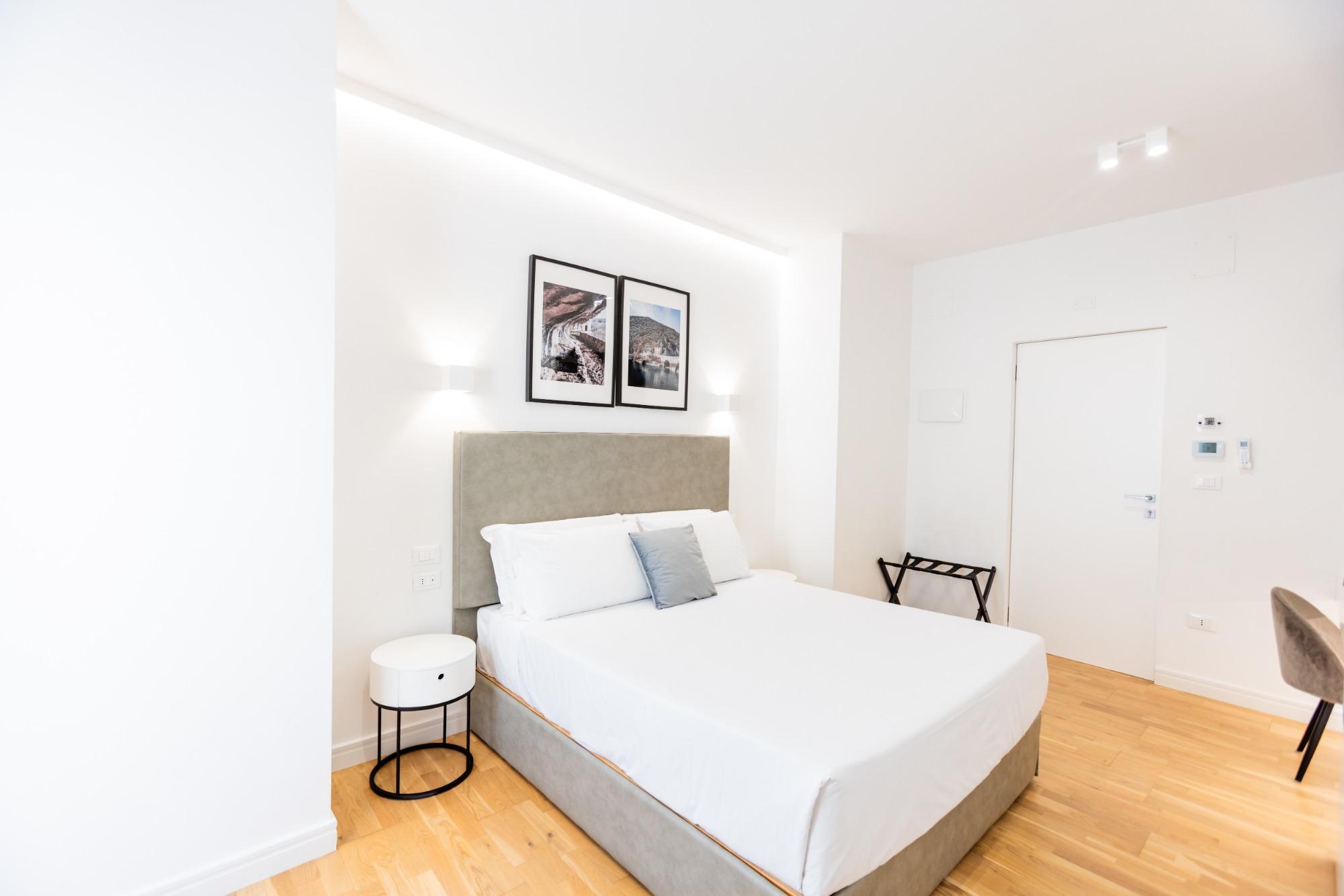 Consisting of 3 deluxe rooms and 1 junior suite, Centoquindici Rooms & Suite offers you a unique experience. The rooms, characterized by a bright and casual Italian design, are decorated in total white. Here, the concept of luxury becomes accessible, modern, and functional. The natural oak parquet flooring adds a touch of elegance, while the ultra-comfortable memory gel double bed and air conditioning ensure a pleasant stay. You can also enjoy fast fiber Wi-Fi connection up to 1 Gb/s, a work desk, a Smart TV up to 65 inches 4K HDR, a safety deposit box, and a bathroom with a spacious hydrotherapy shower.