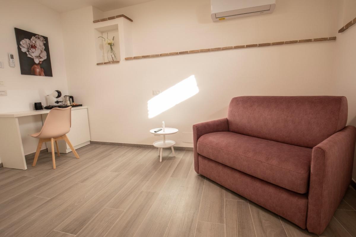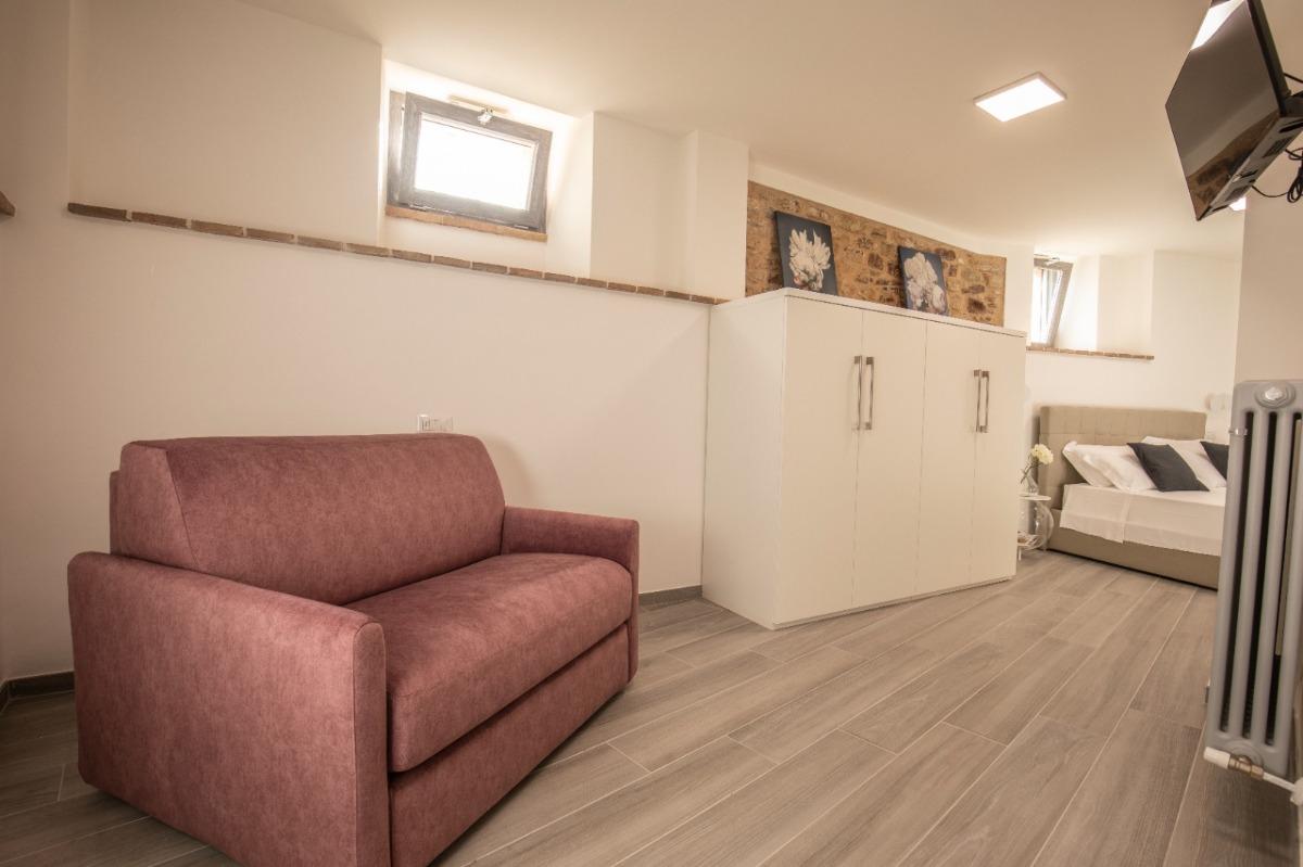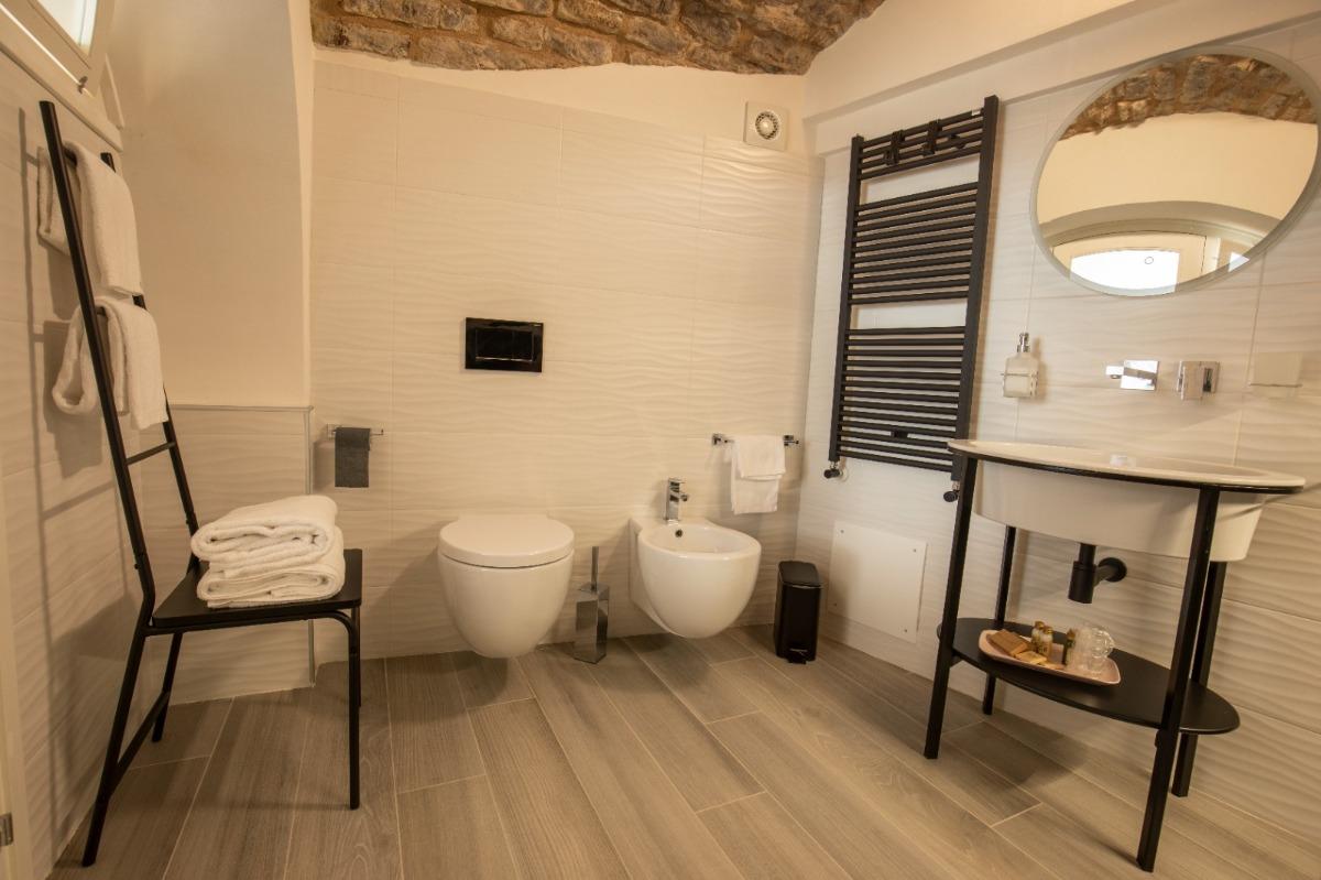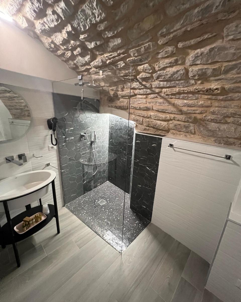Our rooms have been completely renovated and carefully furnished in 2022, seeking to enhance the ancient medieval remains in typical pink Assisi stone and the ceilings with exposed beams. Each room is equipped with all the comforts: free Wi-Fi, air conditioning, flat-screen TV, complimentary amenities (coffee machine and kettle), hairdryer, bed linen and towels, samples of personal hygiene products (shampoo, shower gel, body lotion, hand soap, and cleaning kit), refrigerator, free crib upon request, air conditioning, and heating.